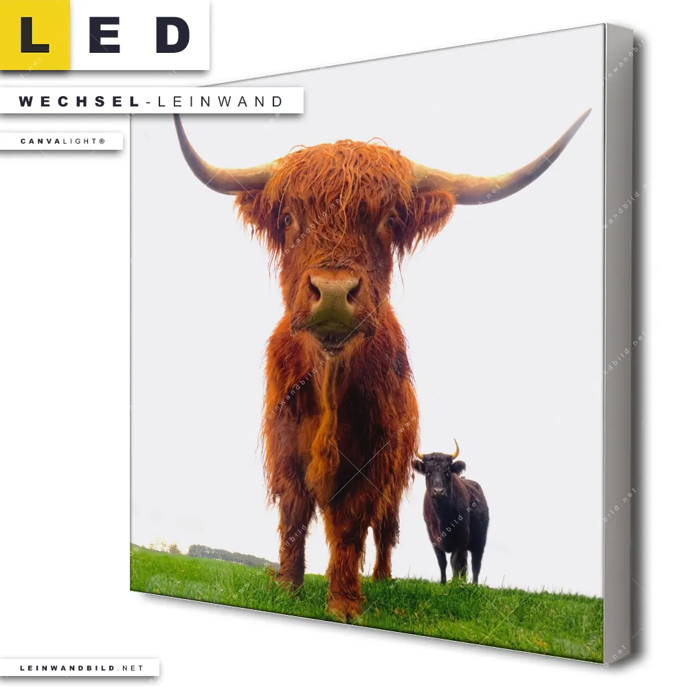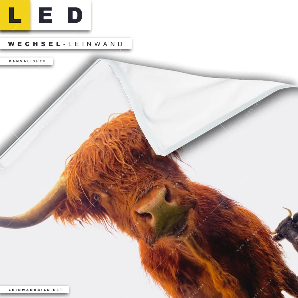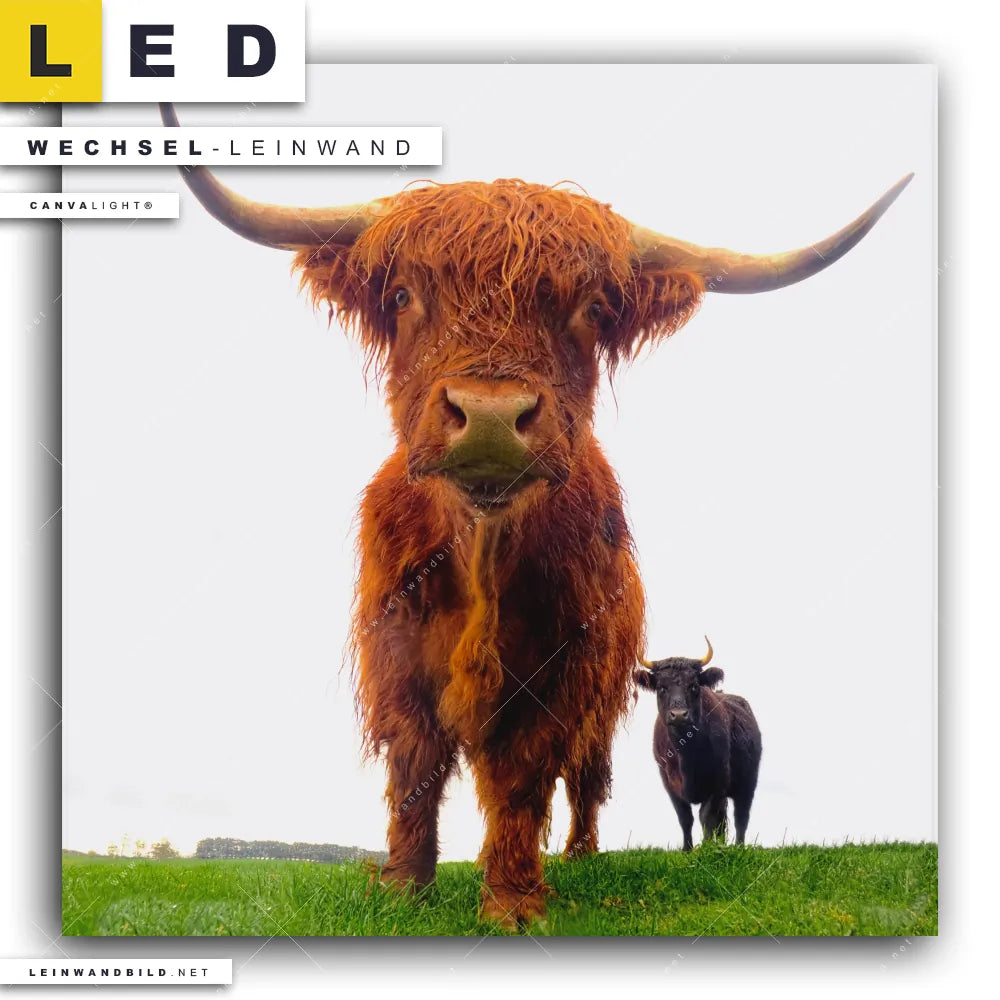 Du bist auf der Suche nach einer Tierwelt Wechsel-Leinwand für Dein LED-Leinwandbild im Quadratischen Format? Begriffe wie Tier, Stier, Hochlandkuh, Highlander, Büffel, Rind, Bulle, Hochland, Kuh, Hochlandrind haben Dich auf der Suche nach Deiner Ersatz-Leinwand für dein LED Wandbild mit wechselbarer Leinwand inspiriert? Farben wie Braun, Grün, Weiss dürfen auf Deinem neuen Wechselmotiv für Dein XXL Leinwand-LED-Bild nicht fehlen und Leinwände im Modern Art, Natürlich - Realistisch Stil für Leuchtbilder passen perfekt zu Deinem Einrichtungsstil?