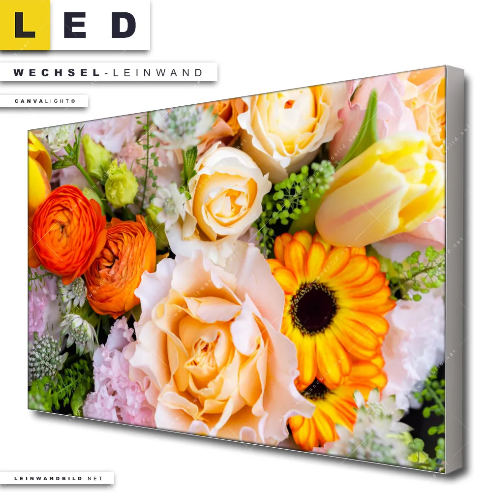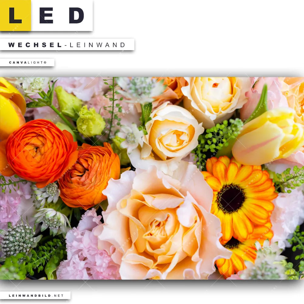 Du bist auf der Suche nach einer Blumen - Botanik Wechsel-Leinwand für Dein LED-Leinwandbild im Querformat? Begriffe wie Pflanze, Nahaufnahme, Blüten, Rosen, Pfingstrosen, Blumenstrauß haben Dich auf der Suche nach Deiner Ersatz-Leinwand für dein breites LED Wandbild mit wechselbarer Leinwand inspiriert? Farben wie Grün, Orange, Rosa dürfen auf Deinem neuen Wechselmotiv für Dein XXL Leinwand-LED-Bild nicht fehlen und Leinwände im Floral, Natürlich - Realistisch Stil für Leuchtbilder passen perfekt zu Deinem Einrichtungsstil?