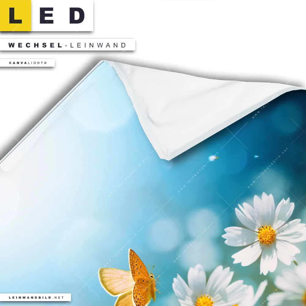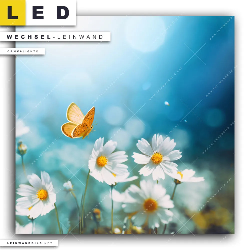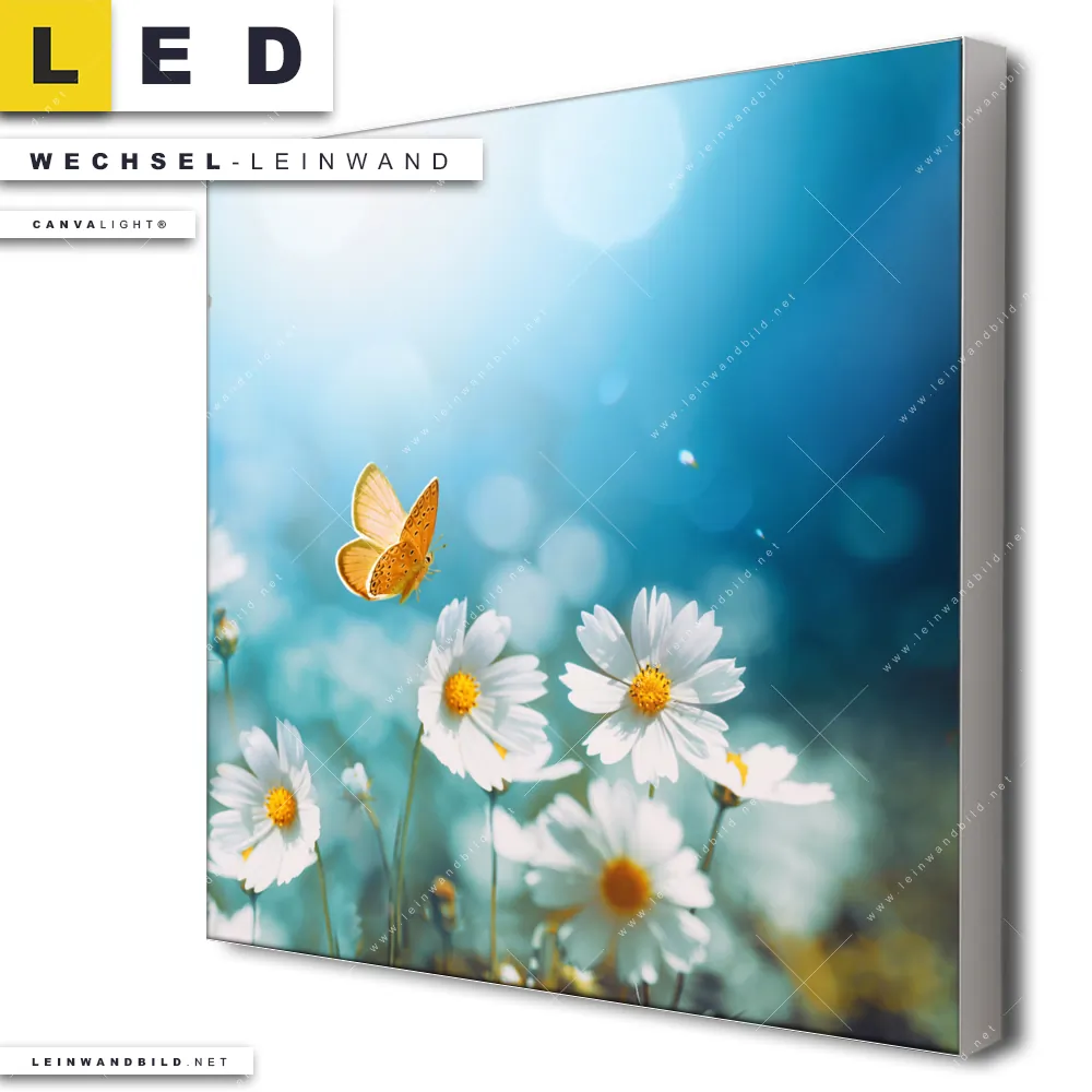 LED Wechsel-Leinwand Canvalight® TEX | Sommerwiese mit Schmetterlingen | Quadrat