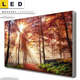 Bitte beachte, dass die Farben, der auf dem Monitor abgebildeten Sonnenstrahlen umhüllen Herbstwald Darstellung, möglicherweise von den Originalfarben deiner Canvalight® TEX Wechsel-Leinwand abweichen können.