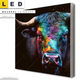 LED Wechsel-Leinwand Canvalight® TEX | Stier mit bunten Farben | Querformat