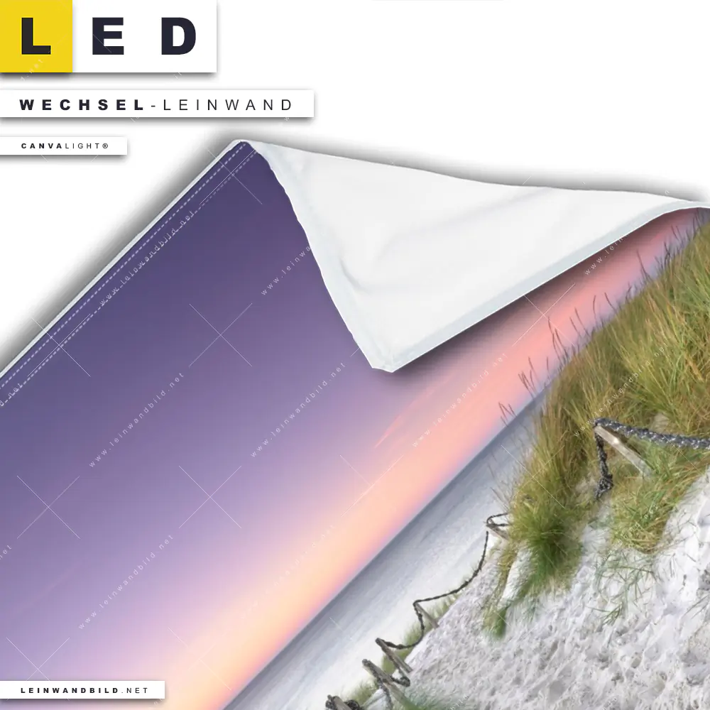 Du konfigurierst Deine individuelle LED Wechsel-Leinwand Canvalight® TEX | Strandweg im Sonnenuntergang | Quadrat und wir produzieren sie NEU für Dich. Unsere Landschaften, Strand - Meer Austausch-Fotoleinwände für Canvalight® LED Bilder sind KEINE Lagerware. Du bist Dir unsicher, welches Motiv oder Format das richtige für dein individuelles LED Wechselmotiv auf Leinwand ist, dann helfen wir dir gerne weiter und beraten dich!