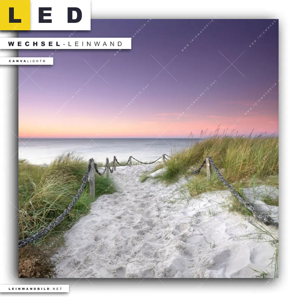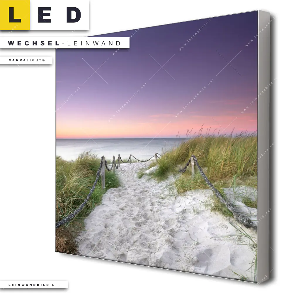 Du bist auf der Suche nach einer Landschaften, Strand - Meer Wechsel-Leinwand für Dein LED-Leinwandbild im Quadratischen Format? Begriffe wie Weg, Pier, Deutschland, Sommer, Frühling, Ostsee, Nordsee, Sonnenuntergang, Sonnenaufgang, Natur, Urlaub, Reisen, Meer, Strand haben Dich auf der Suche nach Deiner Ersatz-Leinwand für dein LED Wandbild mit wechselbarer Leinwand inspiriert? Farben wie Lila, Orange, Beige, Grün dürfen auf Deinem neuen Wechselmotiv für Dein XXL Leinwand-LED-Bild nicht fehlen und Leinwände im Natürlich - Realistisch Stil für Leuchtbilder passen perfekt zu Deinem Einrichtungsstil?