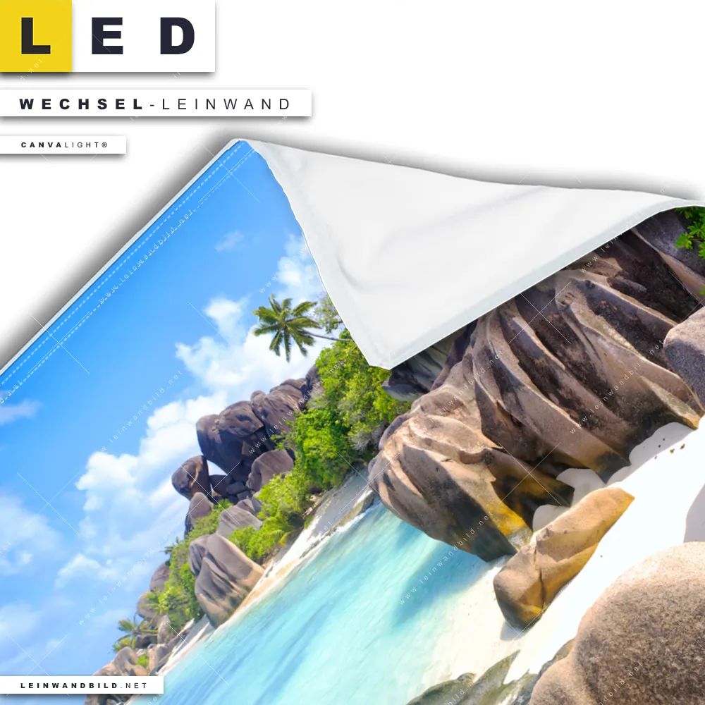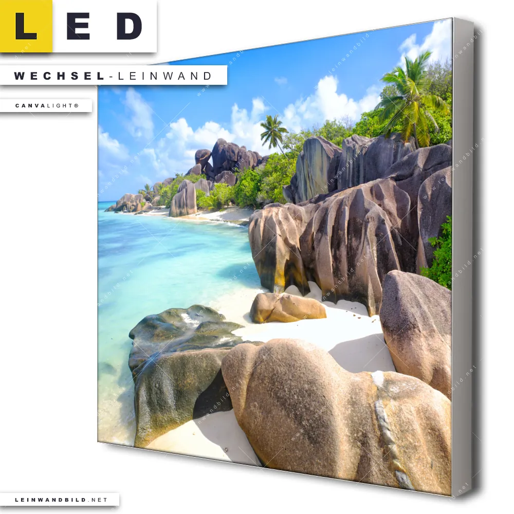 Du konfigurierst Deine individuelle LED Wechsel-Leinwand Canvalight® TEX | Südsee Paradies | Quadrat und wir produzieren sie NEU für Dich. Unsere Landschaften, Strand - Meer Austausch-Fotoleinwände für Canvalight® LED Bilder sind KEINE Lagerware. Du bist Dir unsicher, welches Motiv oder Format das richtige für dein individuelles LED Wechselmotiv auf Leinwand ist, dann helfen wir dir gerne weiter und beraten dich!