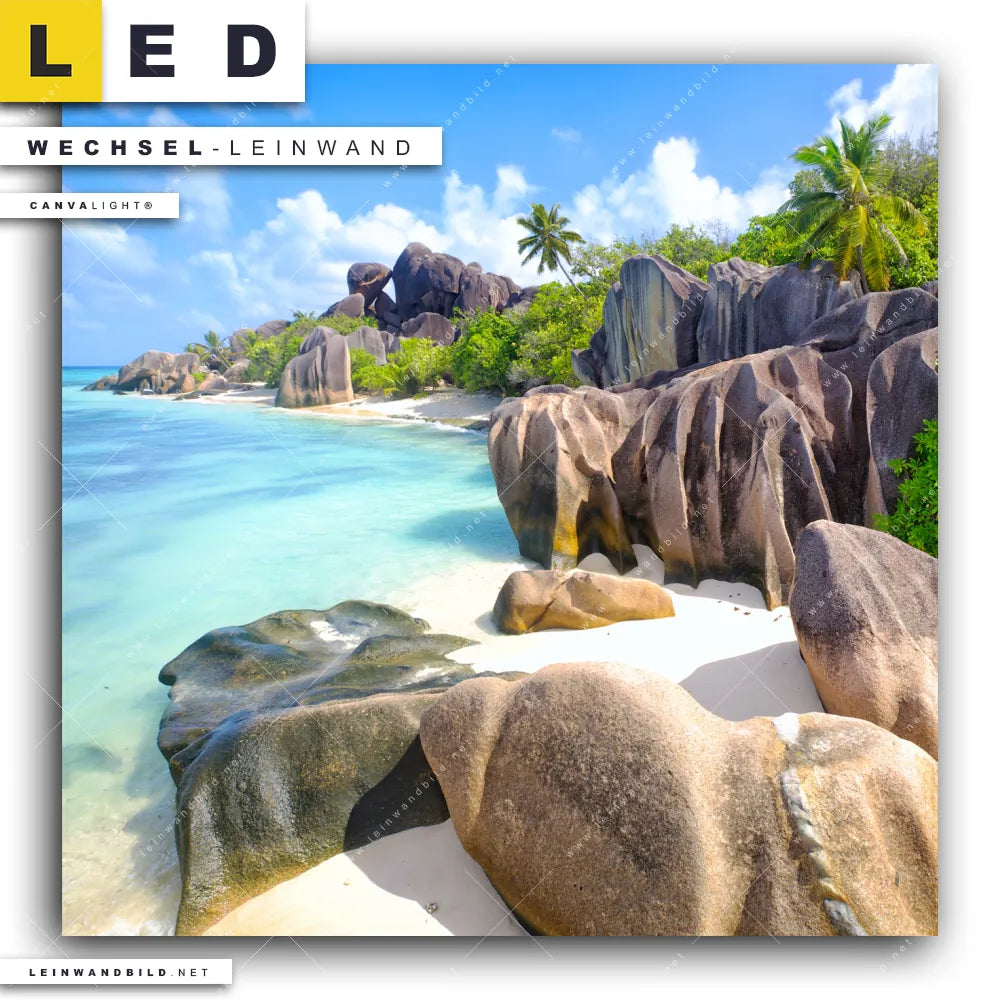 Du bist auf der Suche nach einer Landschaften, Strand - Meer Wechsel-Leinwand für Dein LED-Leinwandbild im Quadratischen Format? Begriffe wie Sand, Ozean, Wasser, Küste, Horizont, Bucht, Insel, Lagune, Felsen, Palmen, Südsee - Karibik, Urlaub - Reisen haben Dich auf der Suche nach Deiner Ersatz-Leinwand für dein LED Wandbild mit wechselbarer Leinwand inspiriert? Farben wie Blau, Türkis, Grün, Beige, Braun dürfen auf Deinem neuen Wechselmotiv für Dein XXL Leinwand-LED-Bild nicht fehlen und Leinwände im Natürlich - Realistisch Stil für Leuchtbilder passen perfekt zu Deinem Einrichtungsstil?
