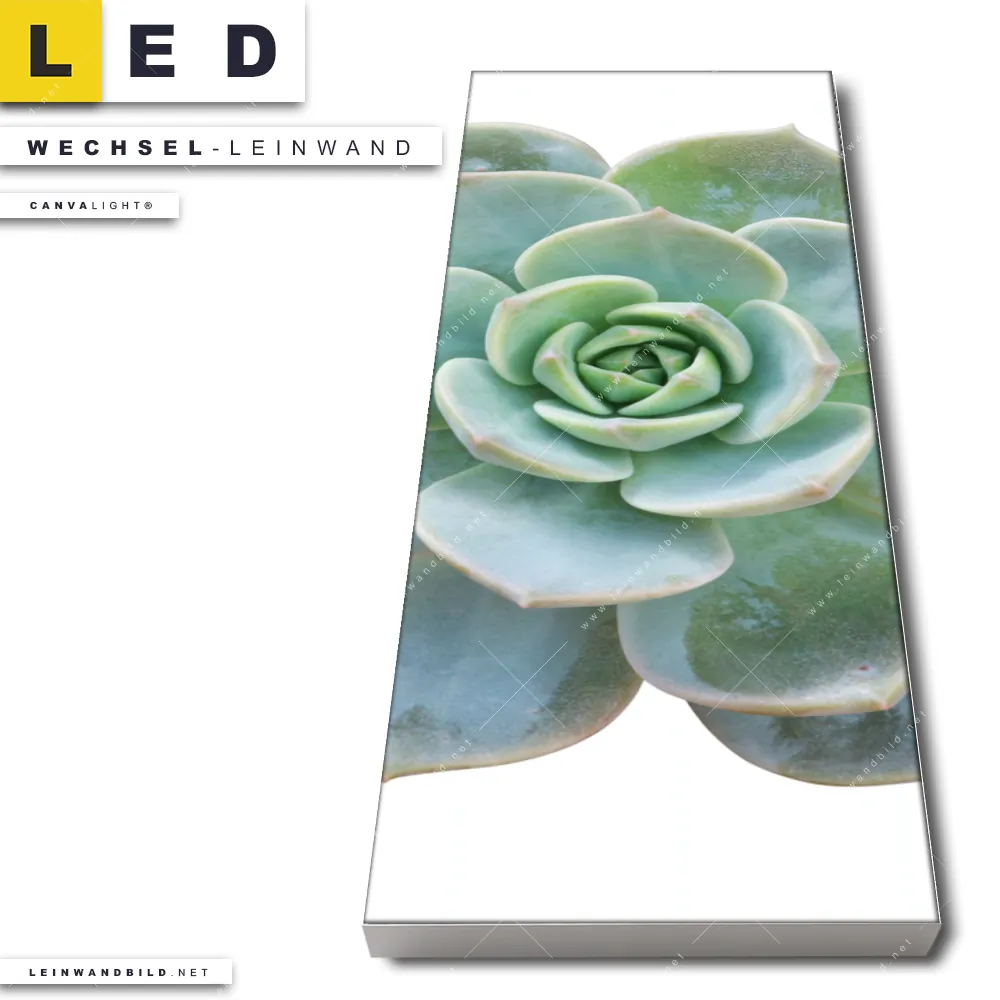 Du konfigurierst Deine individuelle LED Wechsel-Leinwand Canvalight® TEX | Sukkulente No.3 | Schmal und wir produzieren sie NEU für Dich. Unsere Blumen - Botanik, Muster - Texturen Austausch-Fotoleinwände für Canvalight® LED Bilder sind KEINE Lagerware. Du bist Dir unsicher, welches Motiv oder Format das richtige für dein individuelles LED Wechselmotiv auf Leinwand ist, dann helfen wir dir gerne weiter und beraten dich!