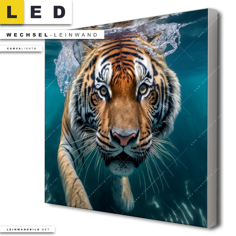 Du bist auf der Suche nach einer Tierwelt Wechsel-Leinwand für Dein LED-Leinwandbild im Quadratischen Format? Begriffe wie Raubkatze, Tiger, Afrika, Dschungel, Wasser, Unterwasser, Wildkatze, tauchen, schwimmen haben Dich auf der Suche nach Deiner Ersatz-Leinwand für dein LED Wandbild mit wechselbarer Leinwand inspiriert? Farben wie Beige, Blau, Braun dürfen auf Deinem neuen Wechselmotiv für Dein XXL Leinwand-LED-Bild nicht fehlen und Leinwände im Modern Art Stil für Leuchtbilder passen perfekt zu Deinem Einrichtungsstil?