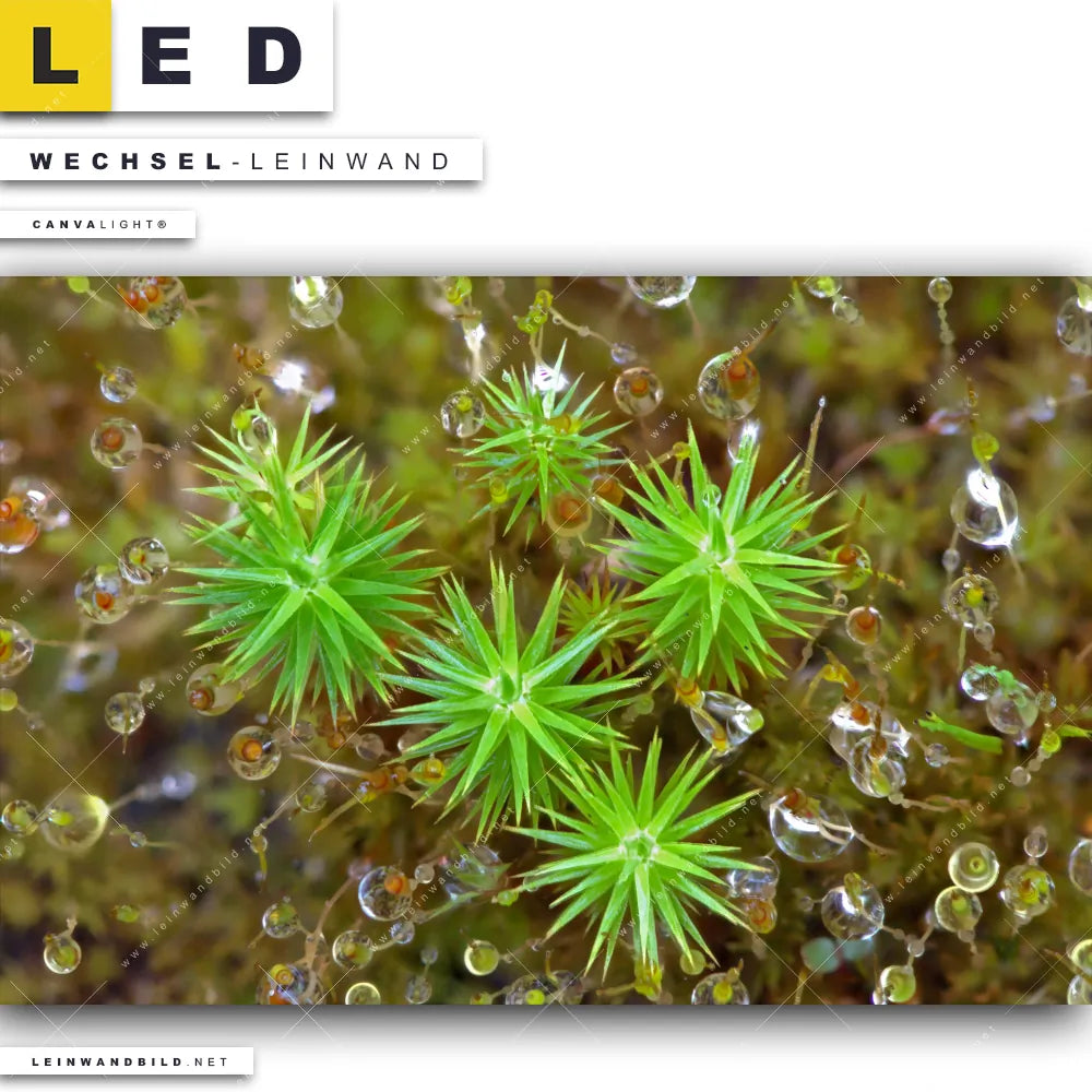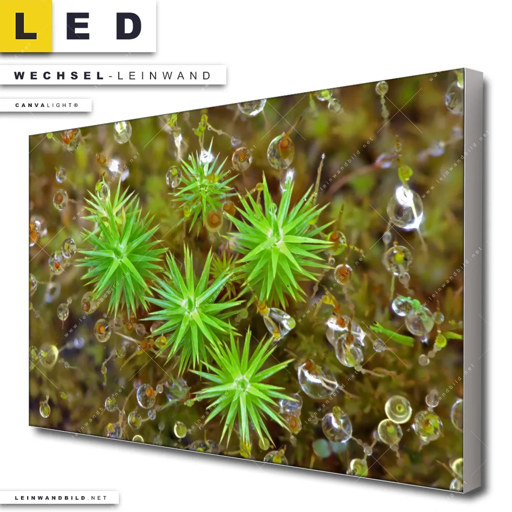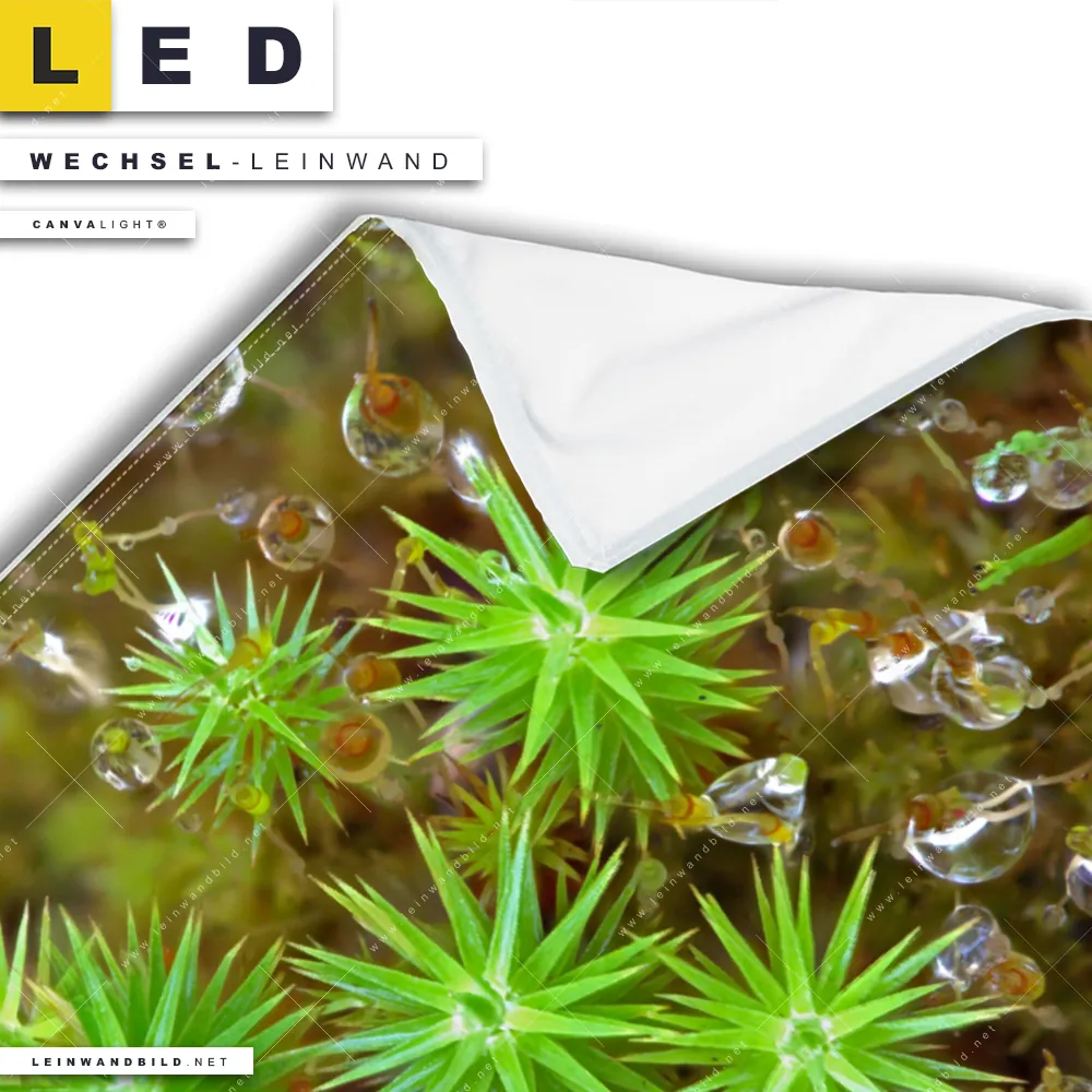 LED Wechsel-Leinwand Canvalight® TEX | Tautropfen auf Moos | Querformat
