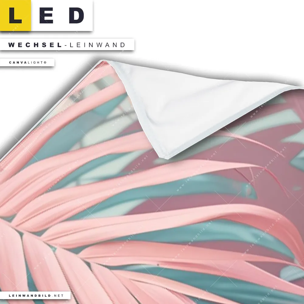 LED Wechsel-Leinwand Canvalight® TEX | Tropische Blätter in Pastellfarben | Panorama