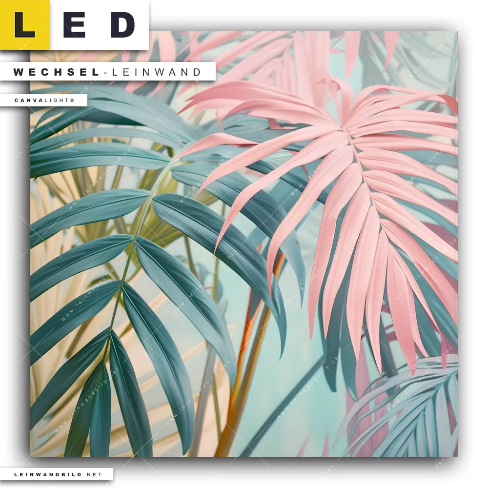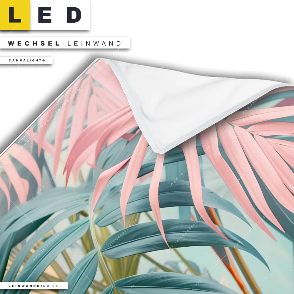 LED Wechsel-Leinwand Canvalight® TEX | Tropische Blätter in Pastellfarben | Quadrat