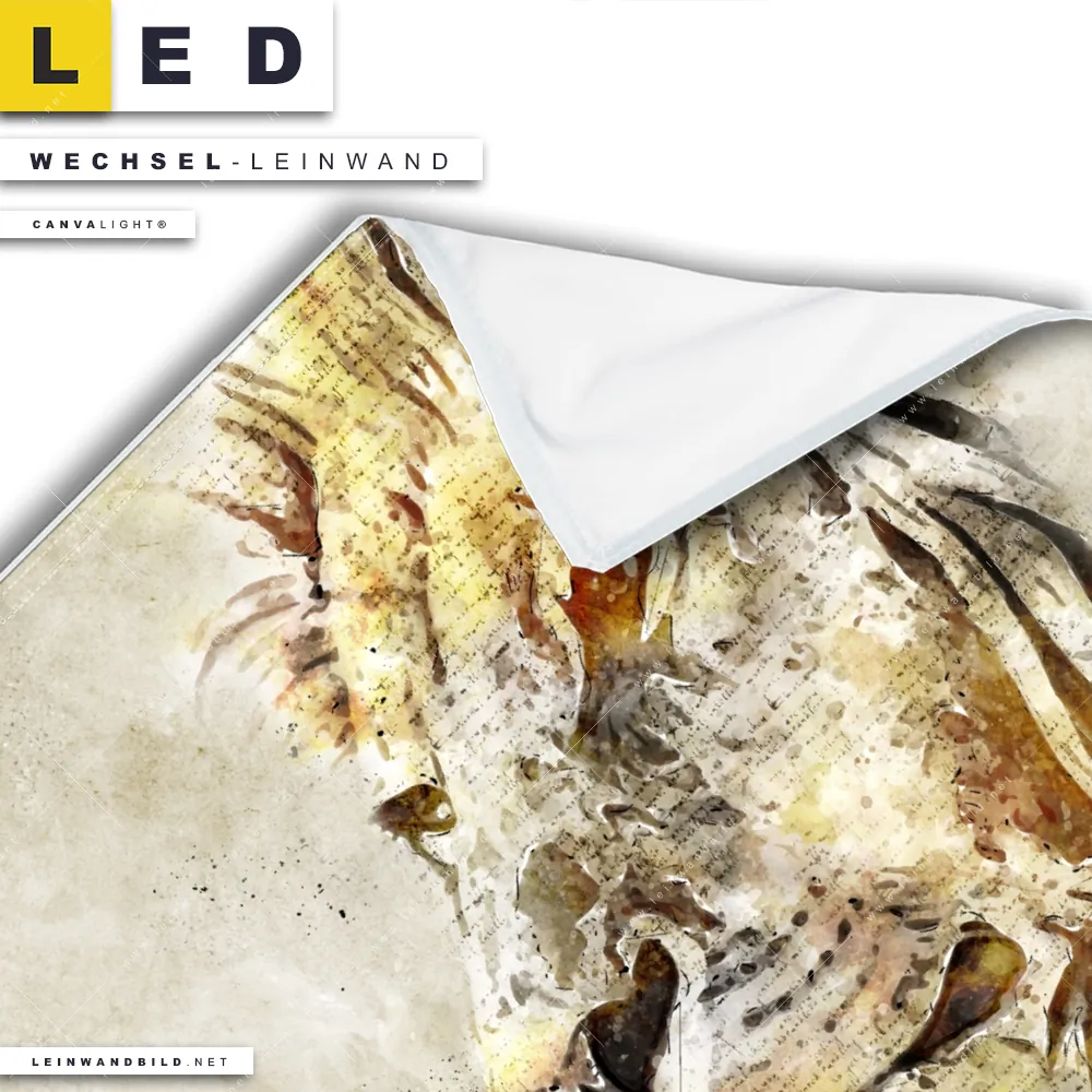 Du konfigurierst Deine individuelle LED Wechsel-Leinwand Canvalight® TEX | Vintage Löwe | Quadrat und wir produzieren sie NEU für Dich. Unsere Tierwelt Austausch-Fotoleinwände für Canvalight® LED Bilder sind KEINE Lagerware. Du bist Dir unsicher, welches Motiv oder Format das richtige für dein individuelles LED Wechselmotiv auf Leinwand ist, dann helfen wir dir gerne weiter und beraten dich!
