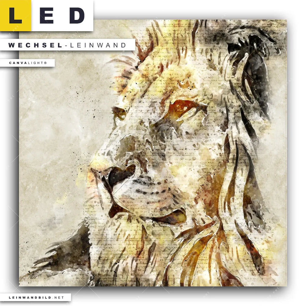 Du bist auf der Suche nach einer Tierwelt Wechsel-Leinwand für Dein LED-Leinwandbild im Quadratischen Format? Begriffe wie Raubkatze, Löwe, Afrika, Dschungel, Lion, wild, Safari, Aquarell haben Dich auf der Suche nach Deiner Ersatz-Leinwand für dein LED Wandbild mit wechselbarer Leinwand inspiriert? Farben wie Braun, Beige dürfen auf Deinem neuen Wechselmotiv für Dein XXL Leinwand-LED-Bild nicht fehlen und Leinwände im Retro - Vintage, Abstrakt Stil für Leuchtbilder passen perfekt zu Deinem Einrichtungsstil?