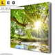 LED Wechsel-Leinwand Canvalight® TEX | Wald mit Bach bei Sonnenschein | Querformat