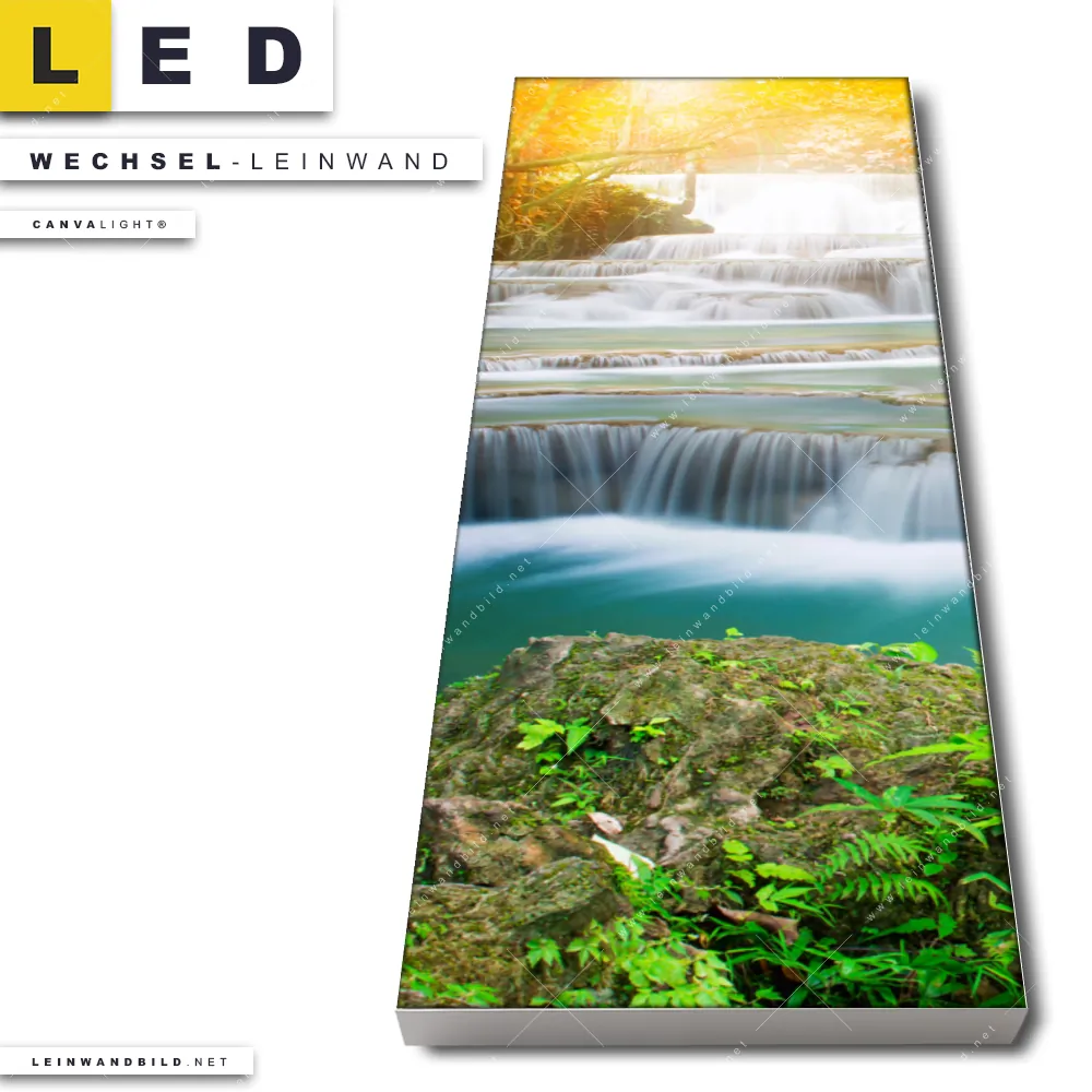 Du konfigurierst Deine individuelle LED Wechsel-Leinwand Canvalight® TEX | Wald & Wasserfall No. 5 | Schmal und wir produzieren sie NEU für Dich. Unsere Landschaften Austausch-Fotoleinwände für Canvalight® LED Bilder sind KEINE Lagerware. Du bist Dir unsicher, welches Motiv oder Format das richtige für dein individuelles LED Wechselmotiv auf Leinwand ist, dann helfen wir dir gerne weiter und beraten dich!