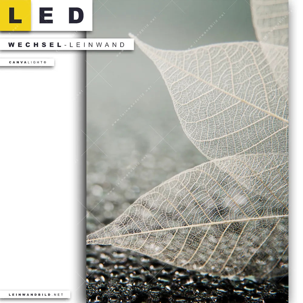 Dann sollte die Wechsel-Leinwand Canvalight® TEX | Weiße Blätter | Hochformat den Weg zu Dir finden. Die Austausch-Leinwand zarte, klare Laubblätter vor Regentropfen - passend für unsere stufenlos dimmbaren, steckerfertigen Leinwandbilder im Leuchtrahmen mit Fernbedienung und optionaler Farbtemperatursteuerung - fügt sich als Eye-Catcher harmonisch in jedes Arzt - Praxis, Büro - Kanzlei, Wohnzimmer - Schlafzimmer Raumkonzept ein.