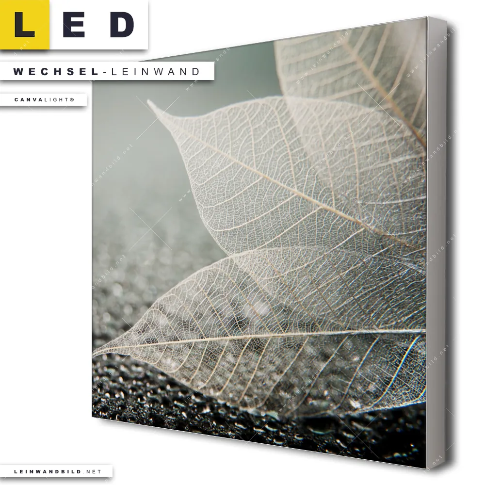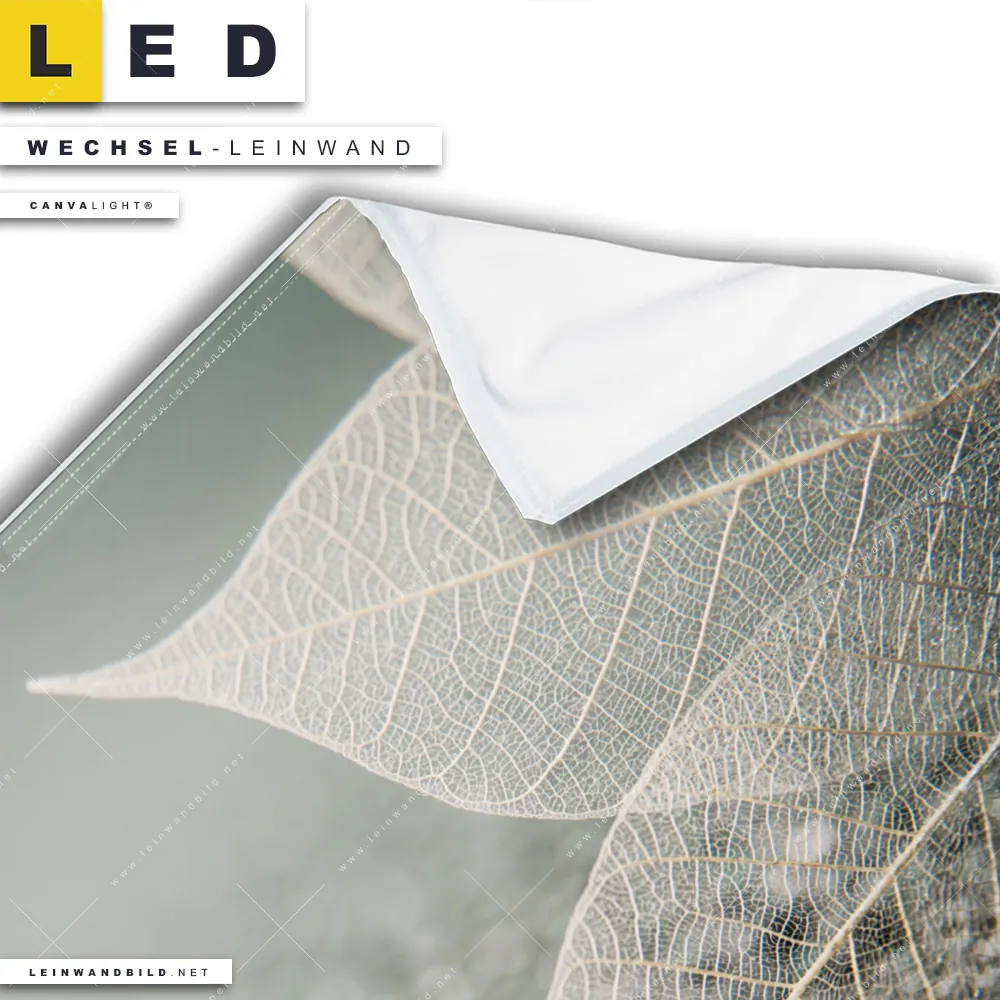 Du konfigurierst Deine individuelle LED Wechsel-Leinwand Canvalight® TEX | Weiße Blätter | Quadrat und wir produzieren sie NEU für Dich. Unsere Muster - Texturen, Blumen - Botanik Austausch-Fotoleinwände für Canvalight® LED Bilder sind KEINE Lagerware. Du bist Dir unsicher, welches Motiv oder Format das richtige für dein individuelles LED Wechselmotiv auf Leinwand ist, dann helfen wir dir gerne weiter und beraten dich!