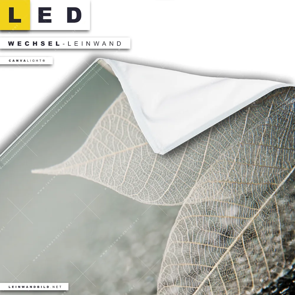 Du konfigurierst Deine individuelle LED Wechsel-Leinwand Canvalight® TEX | Weiße Blätter | Querformat und wir produzieren sie NEU für Dich. Unsere Muster - Texturen, Blumen - Botanik Austausch-Fotoleinwände für Canvalight® LED Bilder sind KEINE Lagerware. Du bist Dir unsicher, welches Motiv oder Format das richtige für dein individuelles LED Wechselmotiv auf Leinwand ist, dann helfen wir dir gerne weiter und beraten dich!