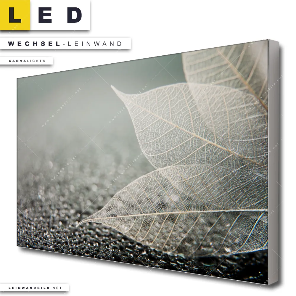Du bist auf der Suche nach einer Muster - Texturen, Blumen - Botanik Wechsel-Leinwand für Dein LED-Leinwandbild im Querformat? Begriffe wie Blätter, Pflanze, Natur, Nahaufnahme, Vogelperspektive, Draufsicht, Blatt, Grautöne haben Dich auf der Suche nach Deiner Ersatz-Leinwand für dein breites LED Wandbild mit wechselbarer Leinwand inspiriert? Farben wie Weiss, Schwarz, Grau dürfen auf Deinem neuen Wechselmotiv für Dein XXL Leinwand-LED-Bild nicht fehlen und Leinwände im Modern Art, Floral Stil für Leuchtbilder passen perfekt zu Deinem Einrichtungsstil?