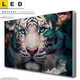 LED Wechsel-Leinwand Canvalight® TEX | Weißer Tiger mit blauen Augen zwischen Blumen | Panorama