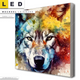 LED Wechsel-Leinwand Canvalight® TEX | Wolf mit bunten Farbspritzern No. 2 | Querformat