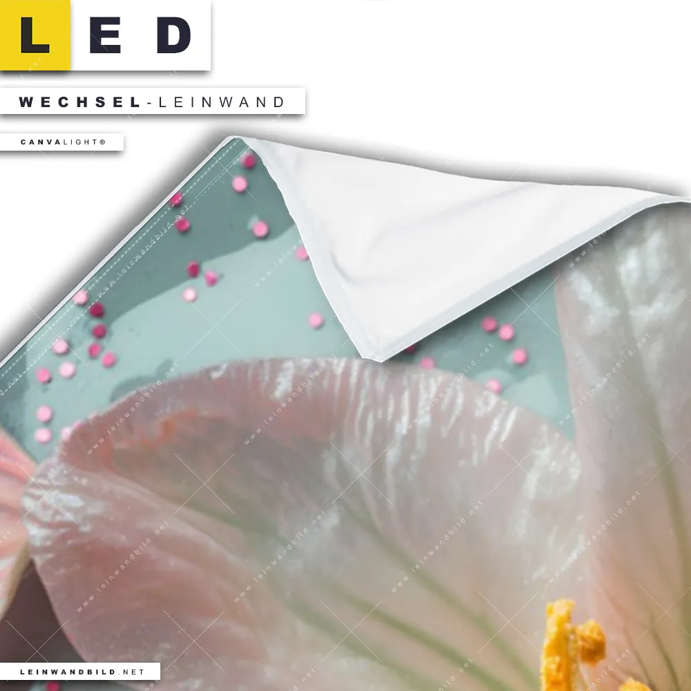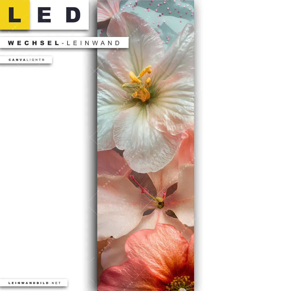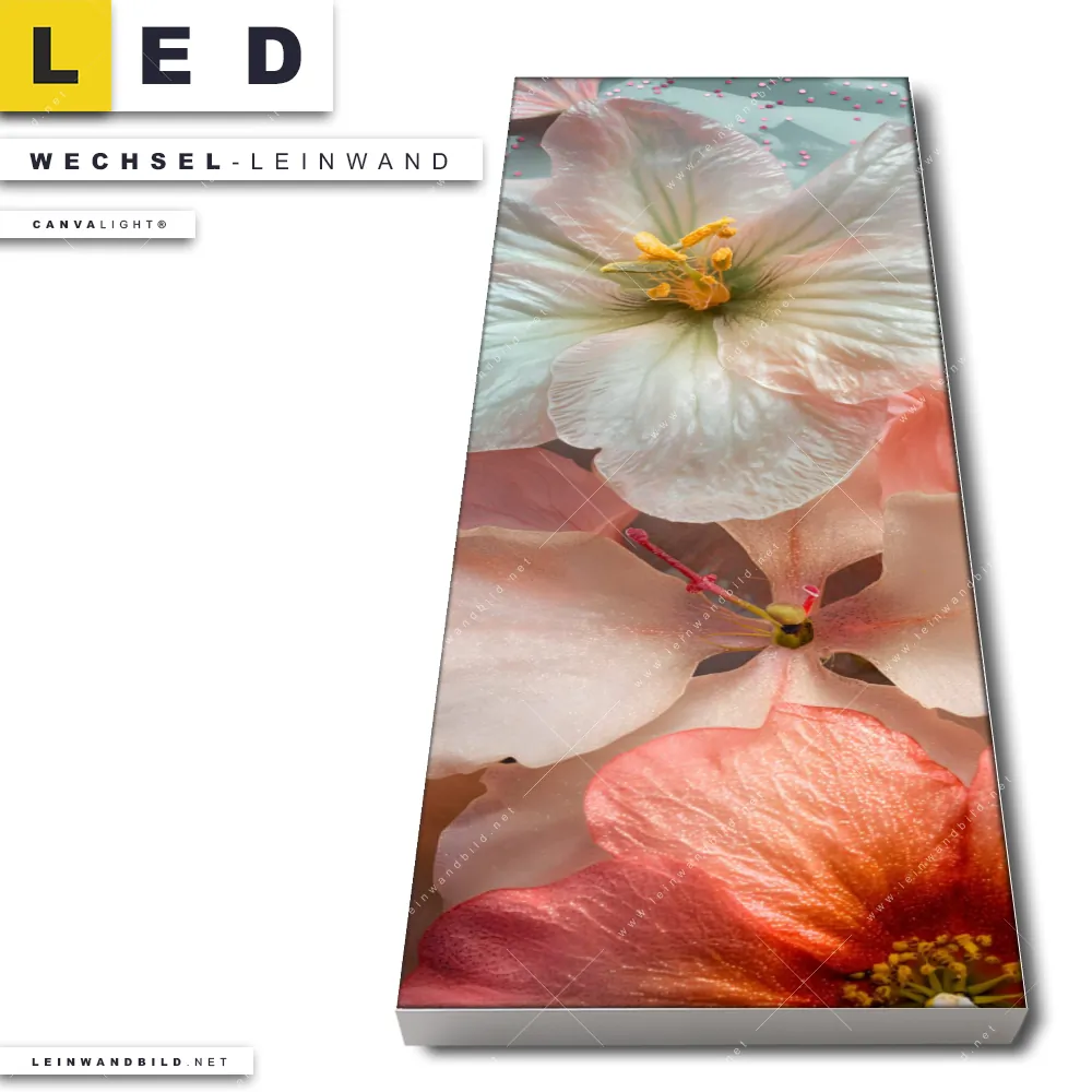 Du konfigurierst Deine individuelle LED Wechsel-Leinwand Canvalight® TEX | Zarte Blütenpracht | Schmal und wir produzieren sie NEU für Dich. Unsere Blumen - Botanik Austausch-Fotoleinwände für Canvalight® LED Bilder sind KEINE Lagerware. Du bist Dir unsicher, welches Motiv oder Format das richtige für dein individuelles LED Wechselmotiv auf Leinwand ist, dann helfen wir dir gerne weiter und beraten dich!