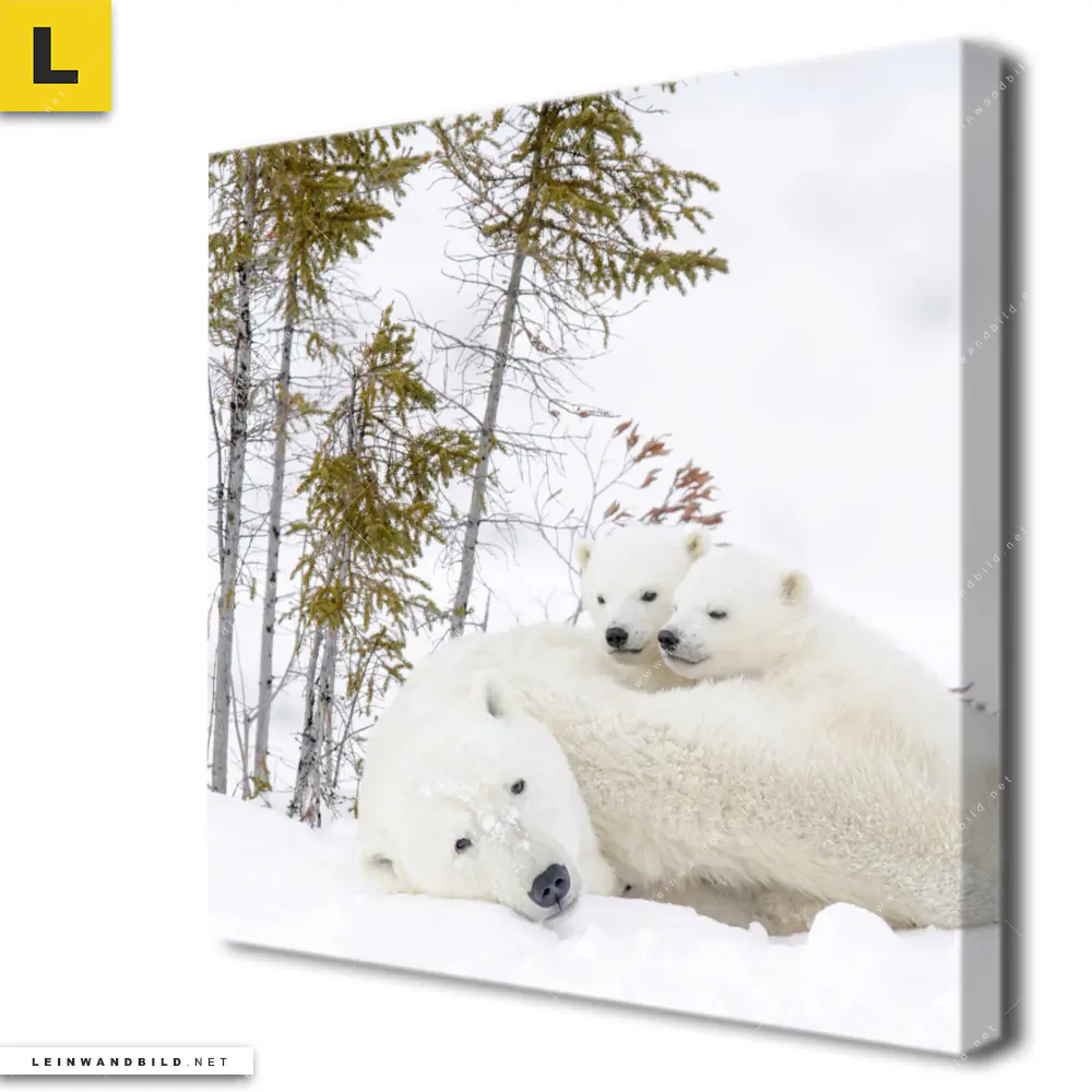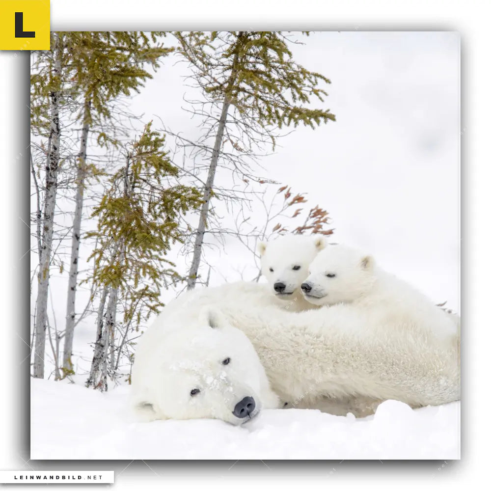 Leinwandbild | Eisbärenfamilie in winterlicher Landschaft | Quadrat