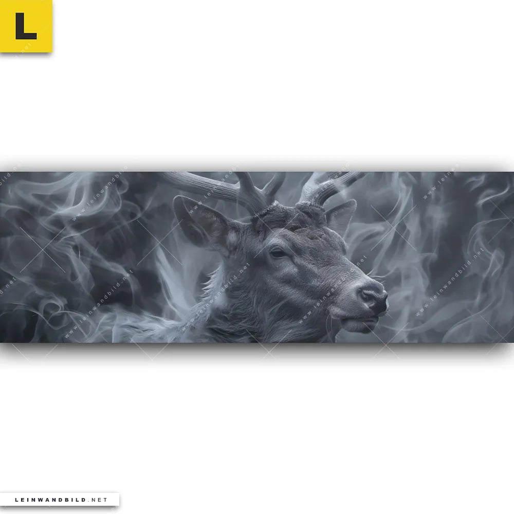Du konfigurierst Dein individuelles Leinwandbild | Mystischer Hirsch im Nebel | Panorama und wir produzieren es NEU für Dich. Unsere Tierwelt Leinwände sind KEINE Lagerware. Du bist Dir unsicher, welches Motiv oder Format das richtige für dein individuelles Keilrahmenbild ist, dann helfen wir dir gerne weiter und beraten dich!