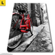 • Motiv: Rotes Fahrrad in Gasse | Motiv am Rand gespiegelt