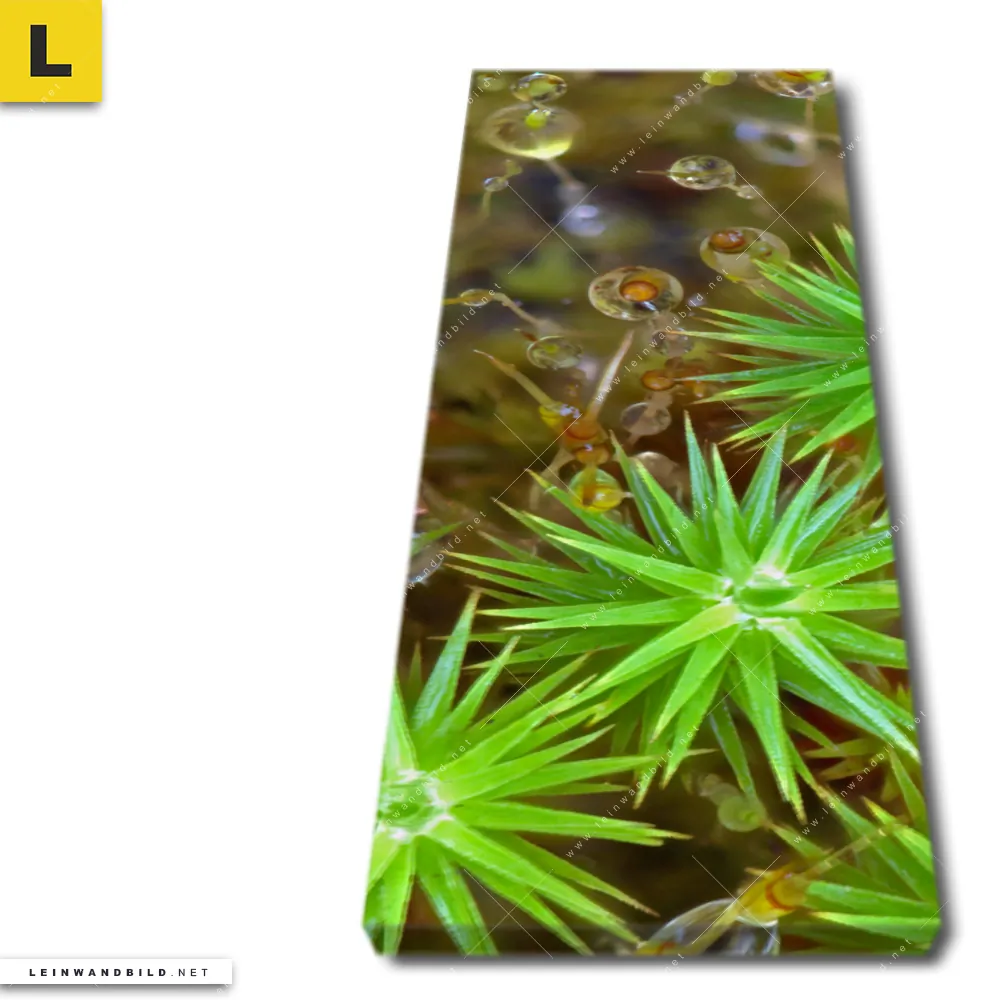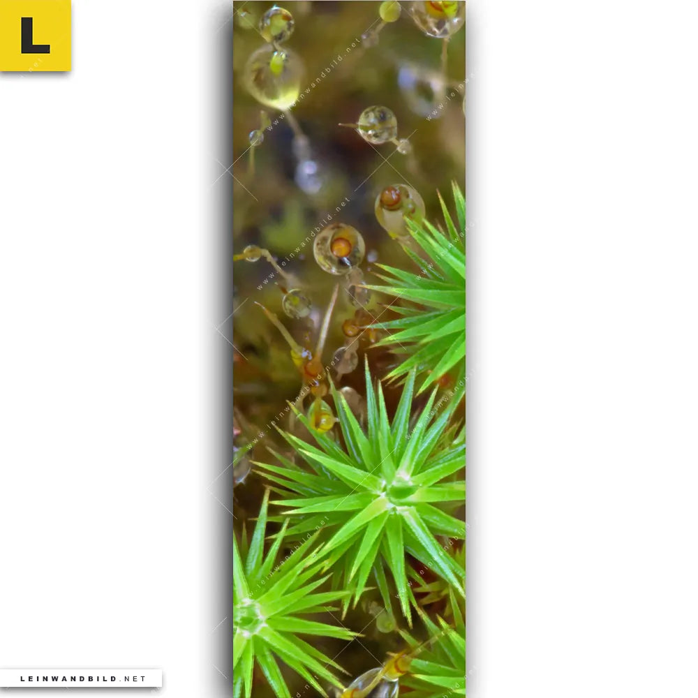 Du konfigurierst Dein individuelles Leinwandbild | Tautropfen auf Moos | Schmal und wir produzieren es NEU für Dich. Unsere Blumen - Botanik Leinwände sind KEINE Lagerware. Du bist Dir unsicher, welches Motiv oder Format das richtige für dein individuelles Keilrahmenbild ist, dann helfen wir dir gerne weiter und beraten dich!
