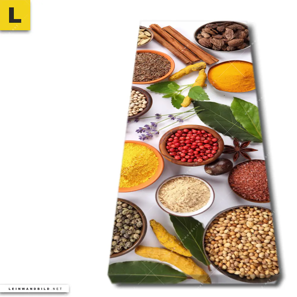 Du konfigurierst Dein individuelles Leinwandbild | Vielfältige Gewürze | Schmal und wir produzieren es NEU für Dich. Unsere Essen - Trinken Leinwände sind KEINE Lagerware. Du bist Dir unsicher, welches Motiv oder Format das richtige für dein individuelles Keilrahmenbild ist, dann helfen wir dir gerne weiter und beraten dich!