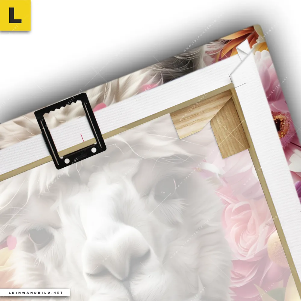 Du konfigurierst Dein individuelles Leinwandbild | Alpaka mit Blumen | Querformat und wir produzieren es NEU für Dich. Unsere Tierwelt, Blumen - Botanik Leinwände sind KEINE Lagerware. Du bist Dir unsicher, welches Motiv oder Format das richtige für dein individuelles Keilrahmenbild ist, dann helfen wir dir gerne weiter und beraten dich!