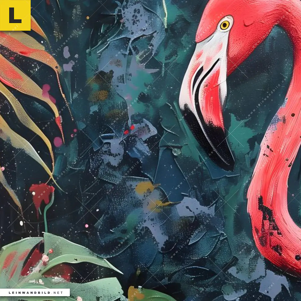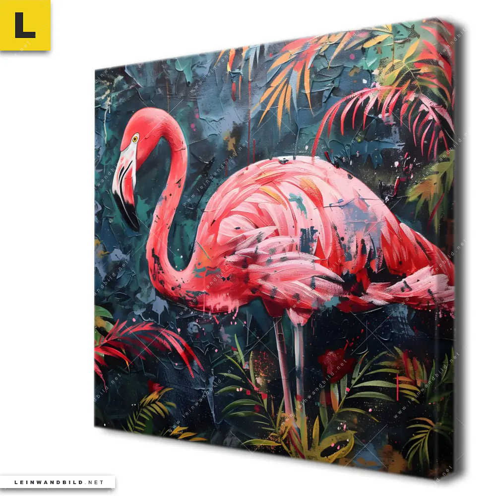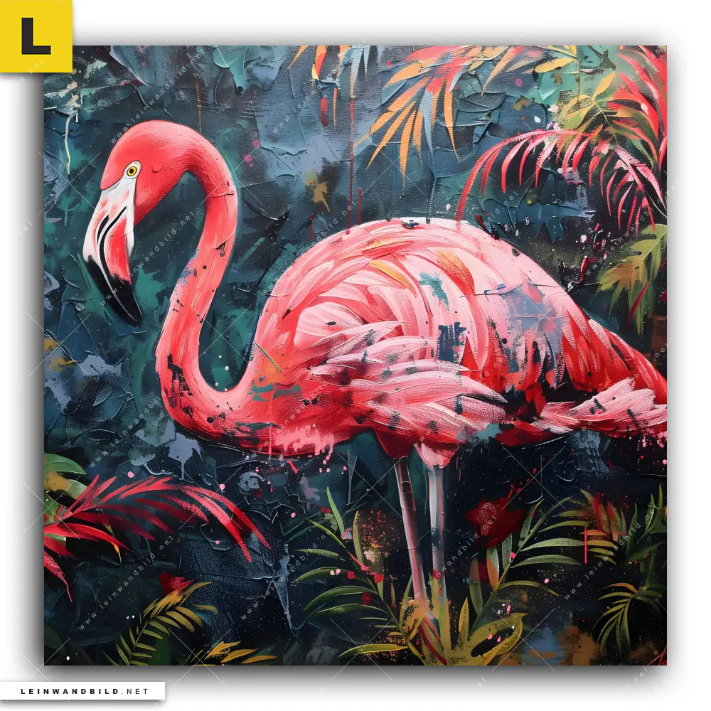 Du konfigurierst Dein individuelles Leinwandbild | Flamingo - Dschungel Eleganz | Quadrat und wir produzieren es NEU für Dich. Unsere Tierwelt, Blumen - Botanik Leinwände sind KEINE Lagerware. Du bist Dir unsicher, welches Motiv oder Format das richtige für dein individuelles Keilrahmenbild ist, dann helfen wir dir gerne weiter und beraten dich!