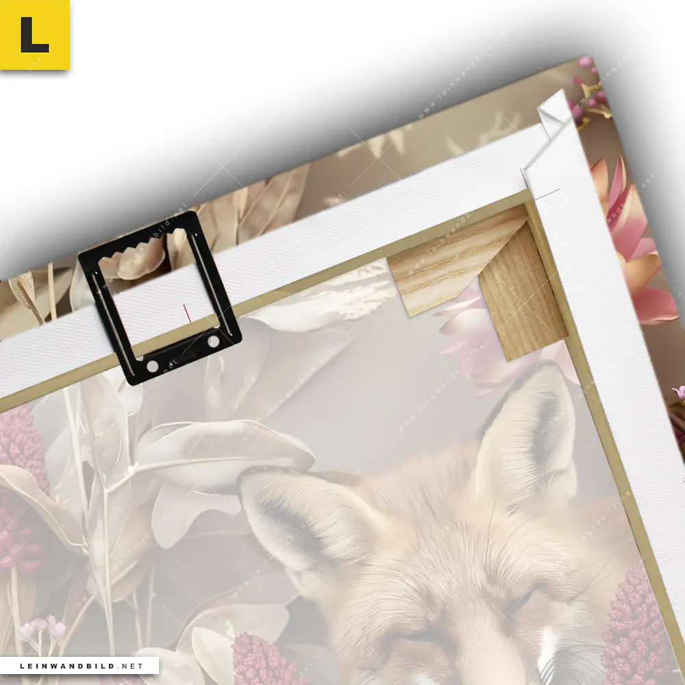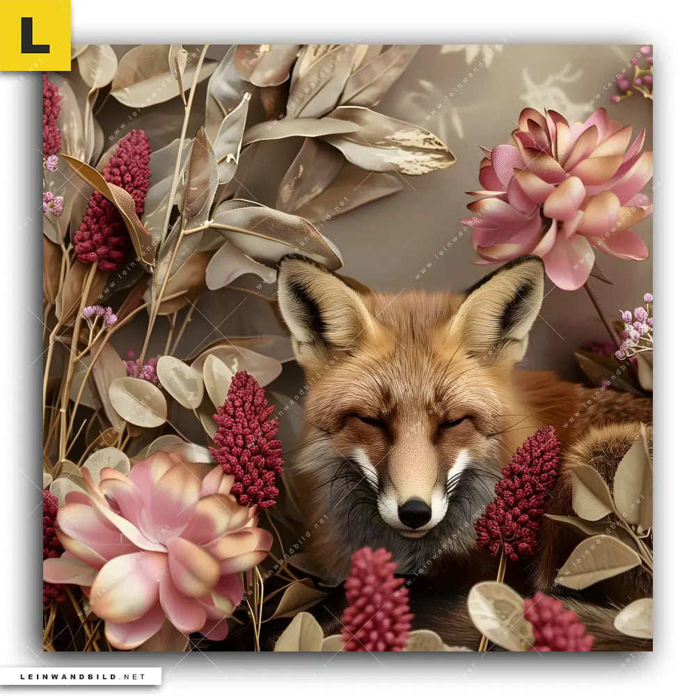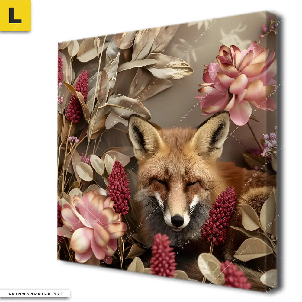 Du konfigurierst Dein individuelles Leinwandbild | Naturbild Fuchs und Blumen | Quadrat und wir produzieren es NEU für Dich. Unsere Tierwelt, Blumen - Botanik Leinwände sind KEINE Lagerware. Du bist Dir unsicher, welches Motiv oder Format das richtige für dein individuelles Keilrahmenbild ist, dann helfen wir dir gerne weiter und beraten dich!