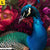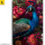 Leinwandbild | Prachtvoller Pfau und Blüten | Hochformat