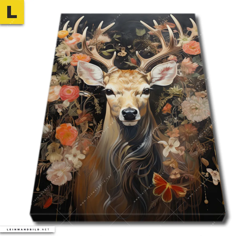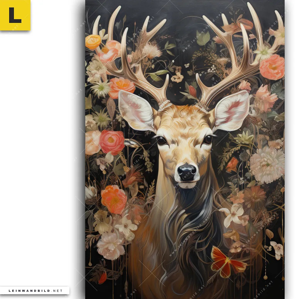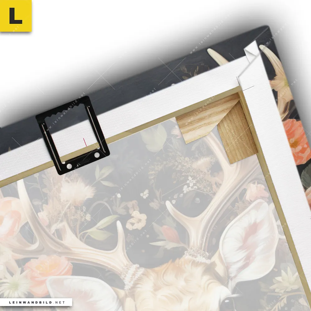Du konfigurierst Dein individuelles Leinwandbild | Reh Blumen | Hochformat und wir produzieren es NEU für Dich. Unsere Tierwelt, Blumen - Botanik Leinwände sind KEINE Lagerware. Du bist Dir unsicher, welches Motiv oder Format das richtige für dein individuelles Keilrahmenbild ist, dann helfen wir dir gerne weiter und beraten dich!