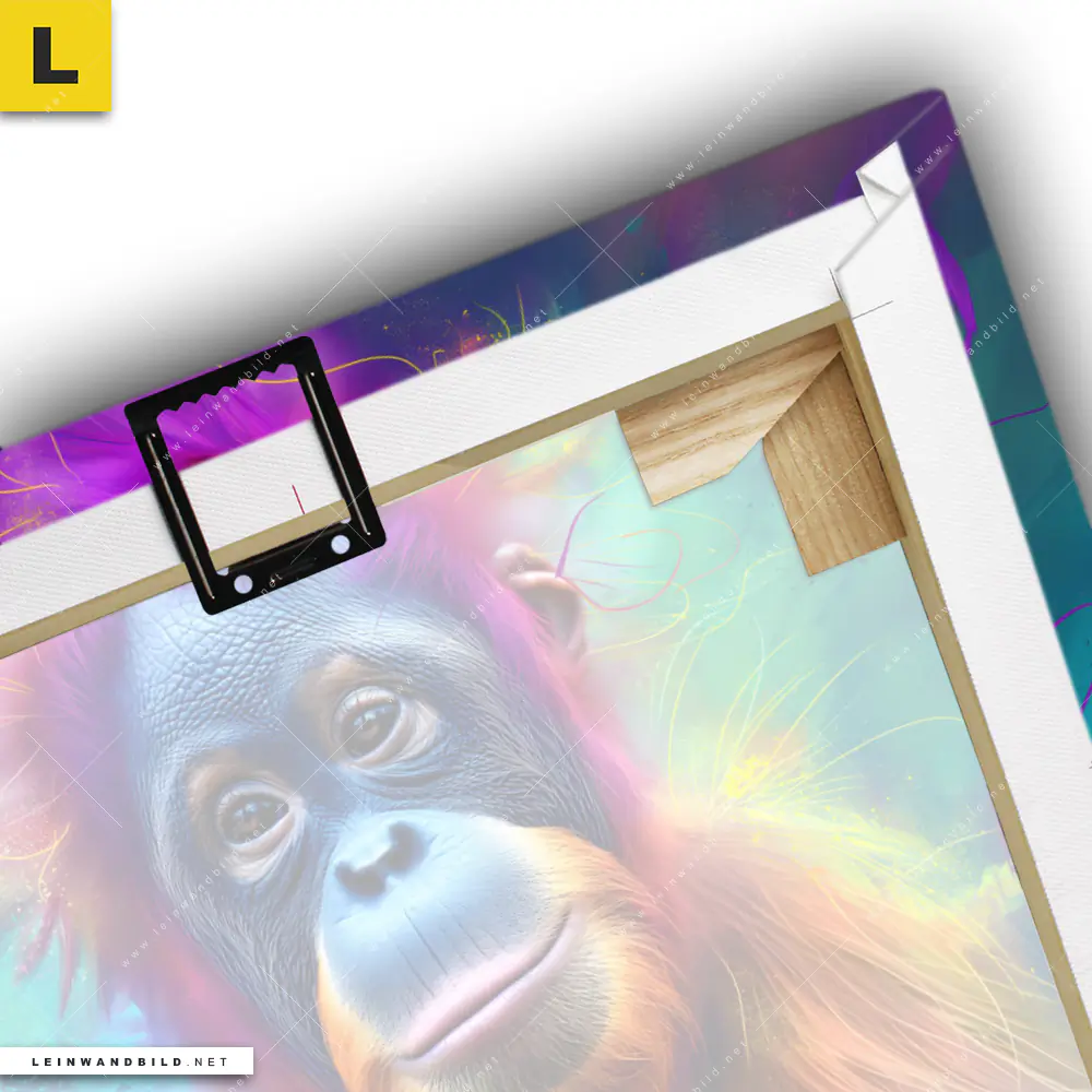 Du konfigurierst Dein individuelles Leinwandbild | Orang-Utan in Regenbogenfarben | Querformat und wir produzieren es NEU für Dich. Unsere Tierwelt Leinwände sind KEINE Lagerware. Du bist Dir unsicher, welches Motiv oder Format das richtige für dein individuelles Keilrahmenbild ist, dann helfen wir dir gerne weiter und beraten dich!