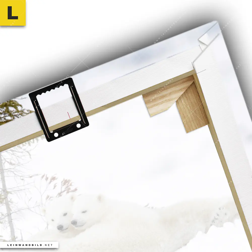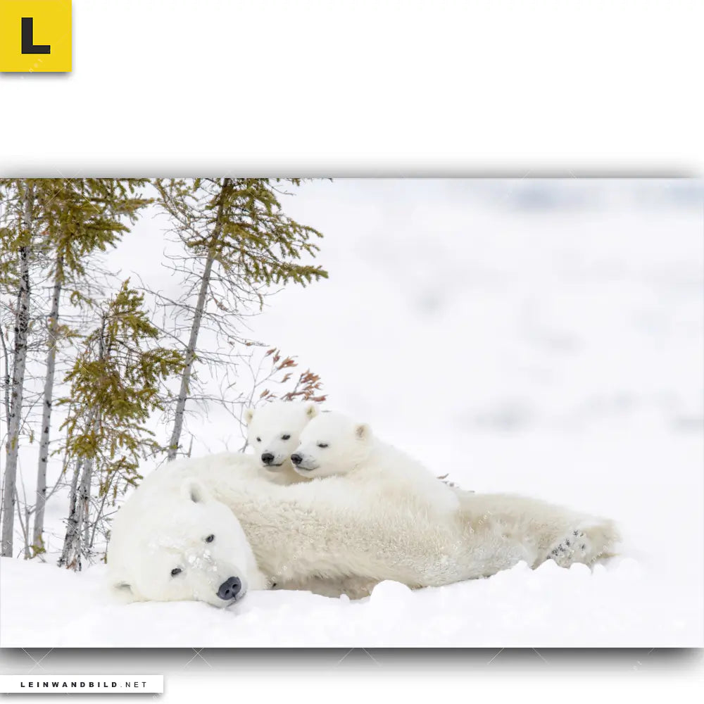 Du konfigurierst Dein individuelles Leinwandbild | Eisbärenfamilie in winterlicher Landschaft | Querformat und wir produzieren es NEU für Dich. Unsere Tierwelt, Landschaften Leinwände sind KEINE Lagerware. Du bist Dir unsicher, welches Motiv oder Format das richtige für dein individuelles Keilrahmenbild ist, dann helfen wir dir gerne weiter und beraten dich!