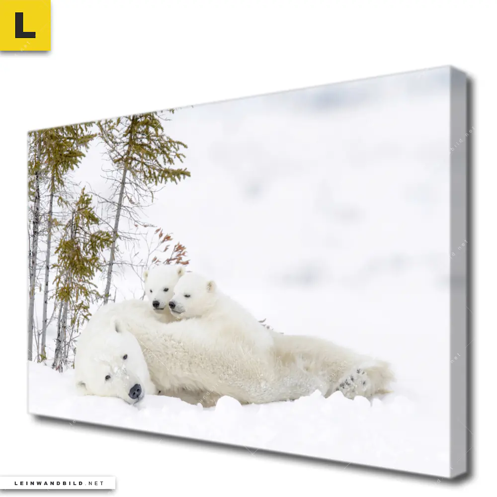 Leinwandbild | Eisbärenfamilie in winterlicher Landschaft | Querformat