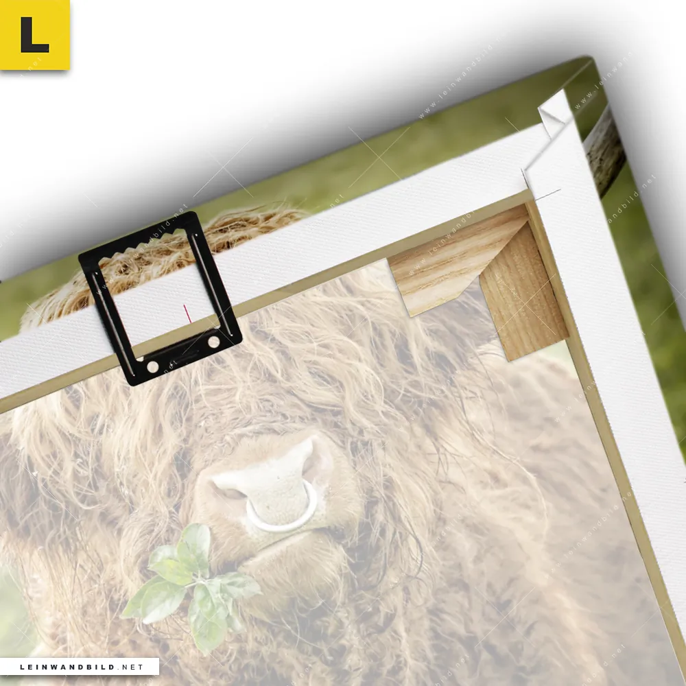 Du konfigurierst Dein individuelles Leinwandbild | Hochland-Rind mit Nasenring | Querformat und wir produzieren es NEU für Dich. Unsere Tierwelt Leinwände sind KEINE Lagerware. Du bist Dir unsicher, welches Motiv oder Format das richtige für dein individuelles Keilrahmenbild ist, dann helfen wir dir gerne weiter und beraten dich!