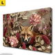 Leinwandbild | Naturbild Fuchs und Blumen | Hochformat