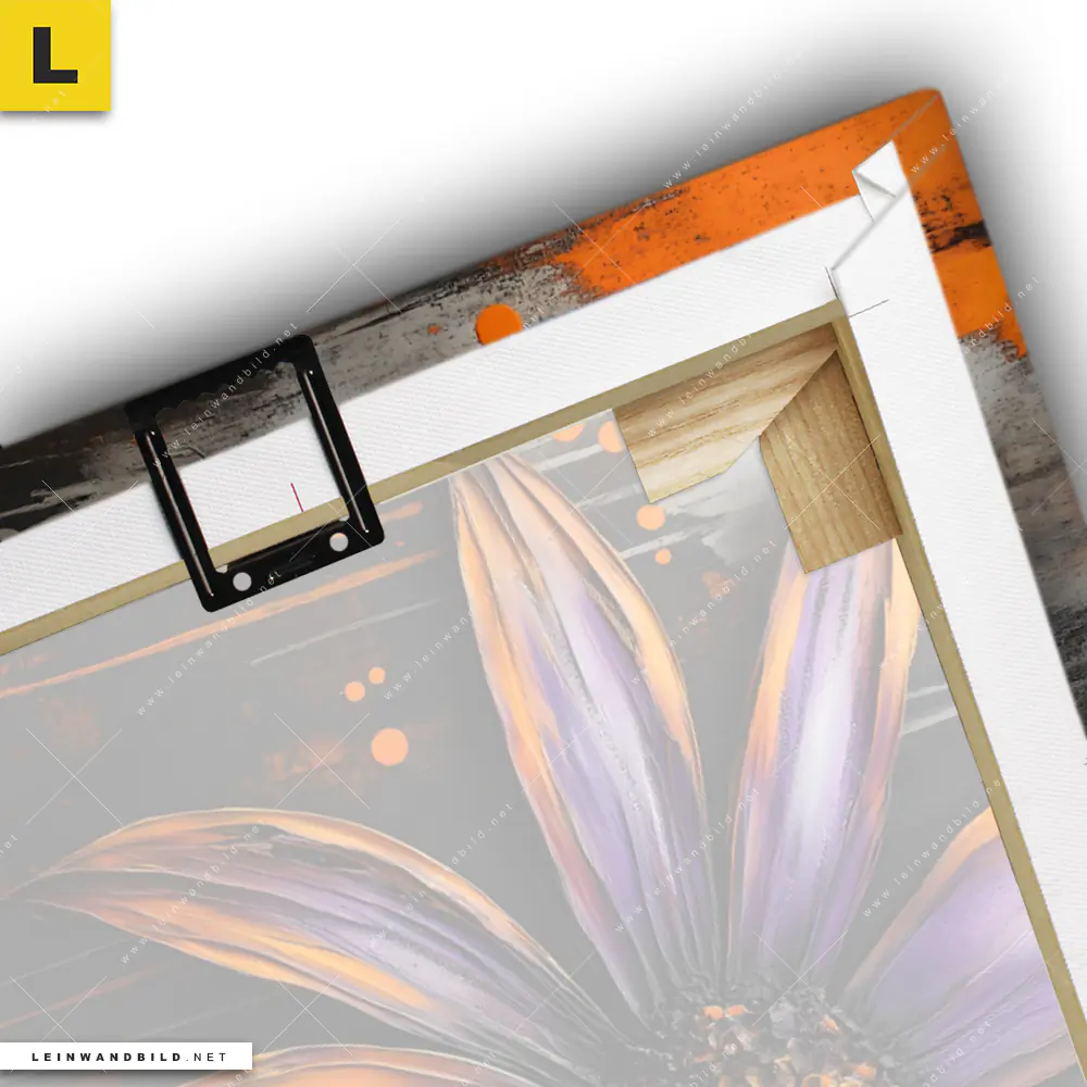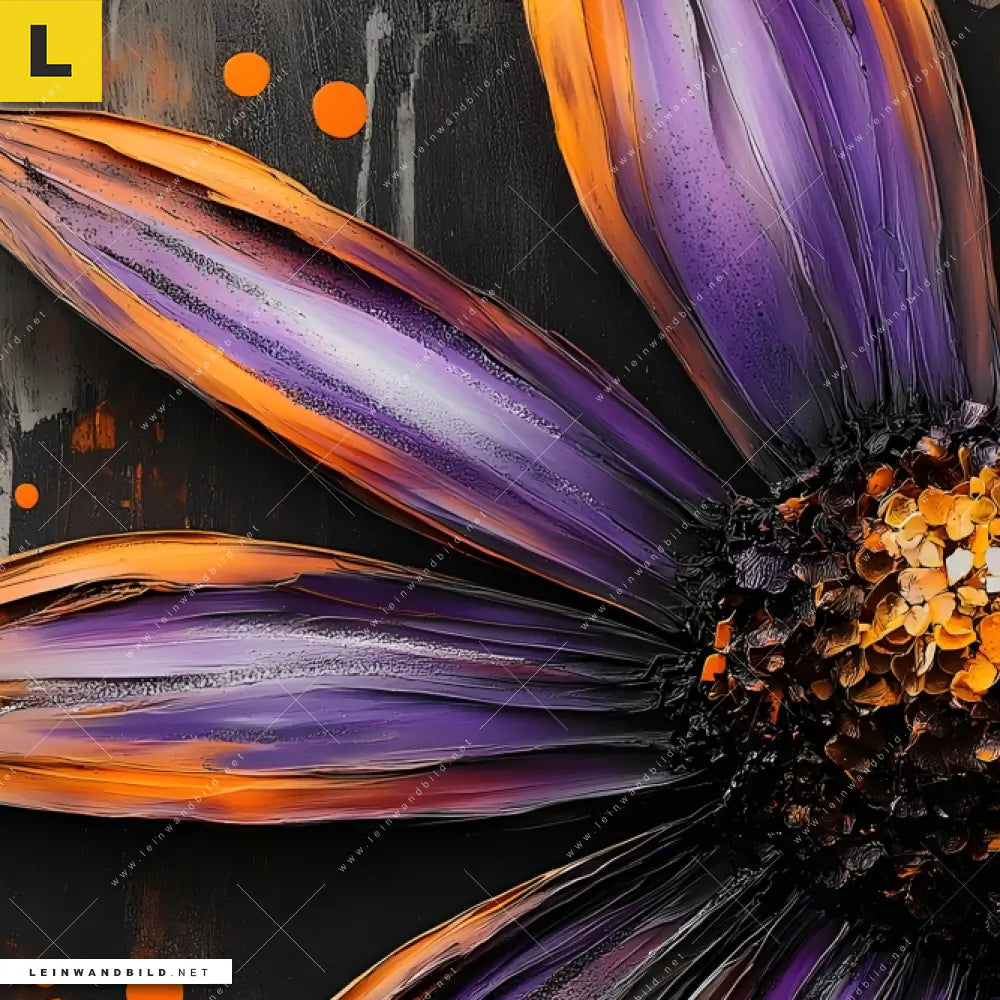 Du konfigurierst Dein individuelles Leinwandbild | Abstrakte Blume in Orange & Lila | Hochformat und wir produzieren es NEU für Dich. Unsere Blumen - Botanik Leinwände sind KEINE Lagerware. Du bist Dir unsicher, welches Motiv oder Format das richtige für dein individuelles Keilrahmenbild ist, dann helfen wir dir gerne weiter und beraten dich!