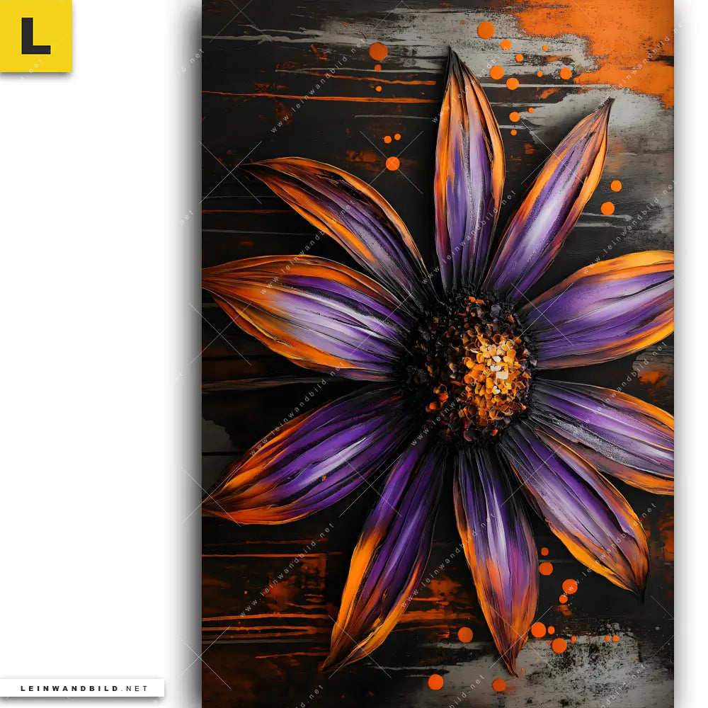 Leinwandbild | Abstrakte Blume in Orange & Lila | Hochformat