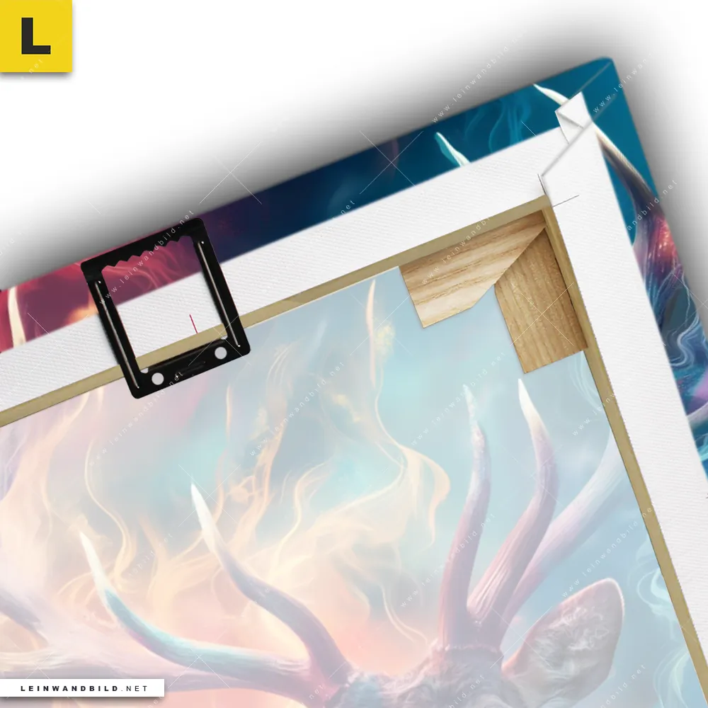 Du konfigurierst Dein individuelles Leinwandbild | Bunter Hirsch in Flammen | Hochformat und wir produzieren es NEU für Dich. Unsere Tierwelt Leinwände sind KEINE Lagerware. Du bist Dir unsicher, welches Motiv oder Format das richtige für dein individuelles Keilrahmenbild ist, dann helfen wir dir gerne weiter und beraten dich!