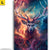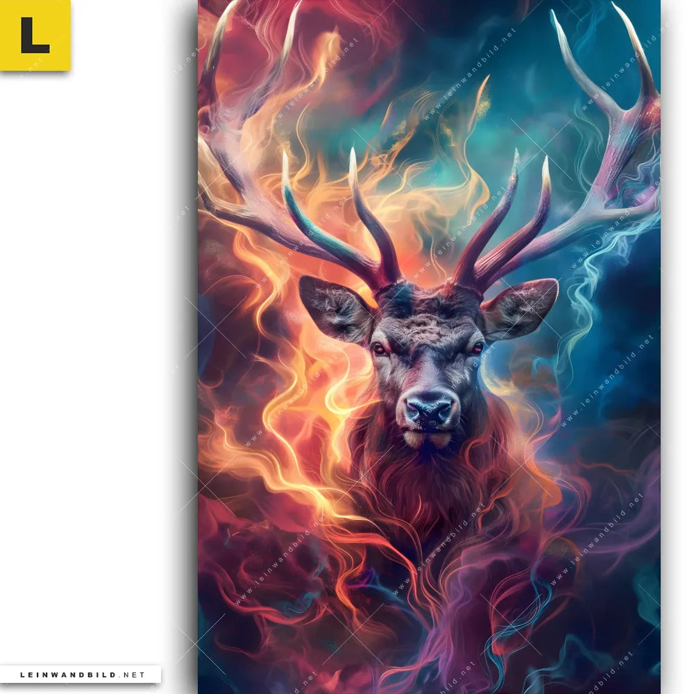 Leinwandbild | Bunter Hirsch in Flammen | Hochformat