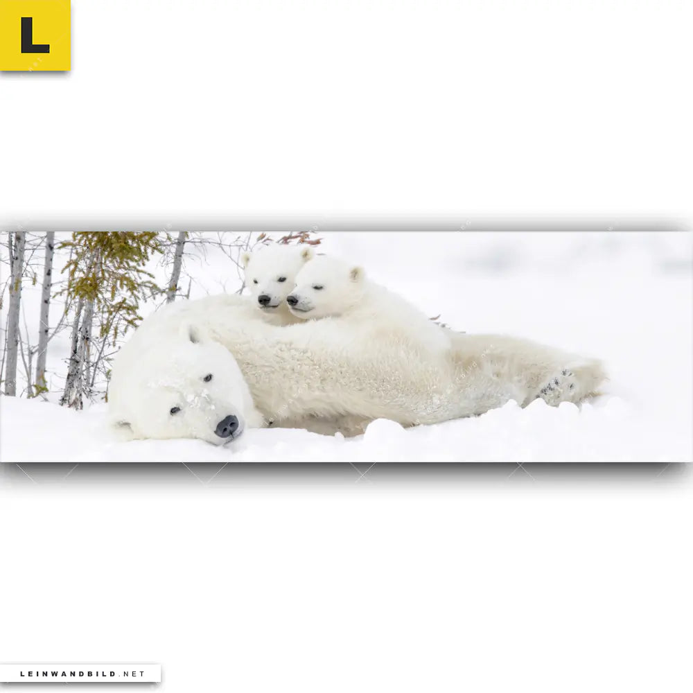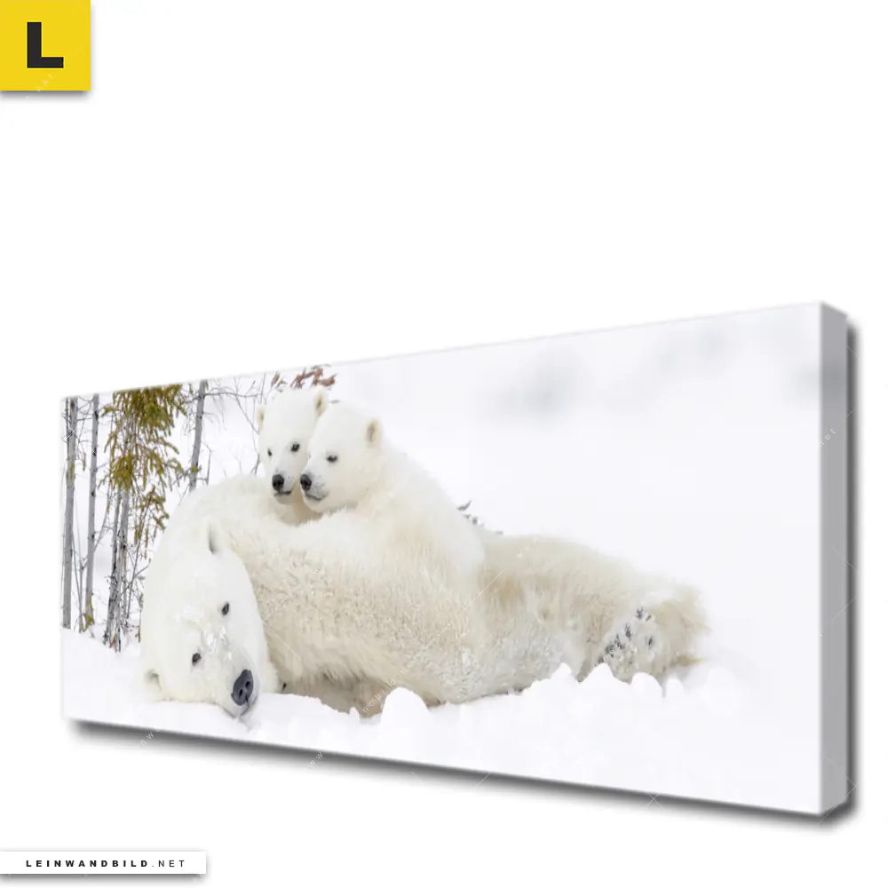 Du konfigurierst Dein individuelles Leinwandbild | Eisbärenfamilie in winterlicher Landschaft | Panorama und wir produzieren es NEU für Dich. Unsere Tierwelt, Landschaften Leinwände sind KEINE Lagerware. Du bist Dir unsicher, welches Motiv oder Format das richtige für dein individuelles Keilrahmenbild ist, dann helfen wir dir gerne weiter und beraten dich!