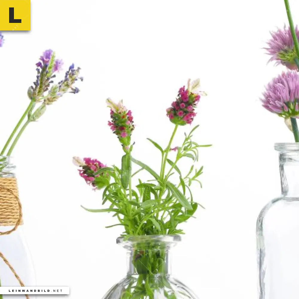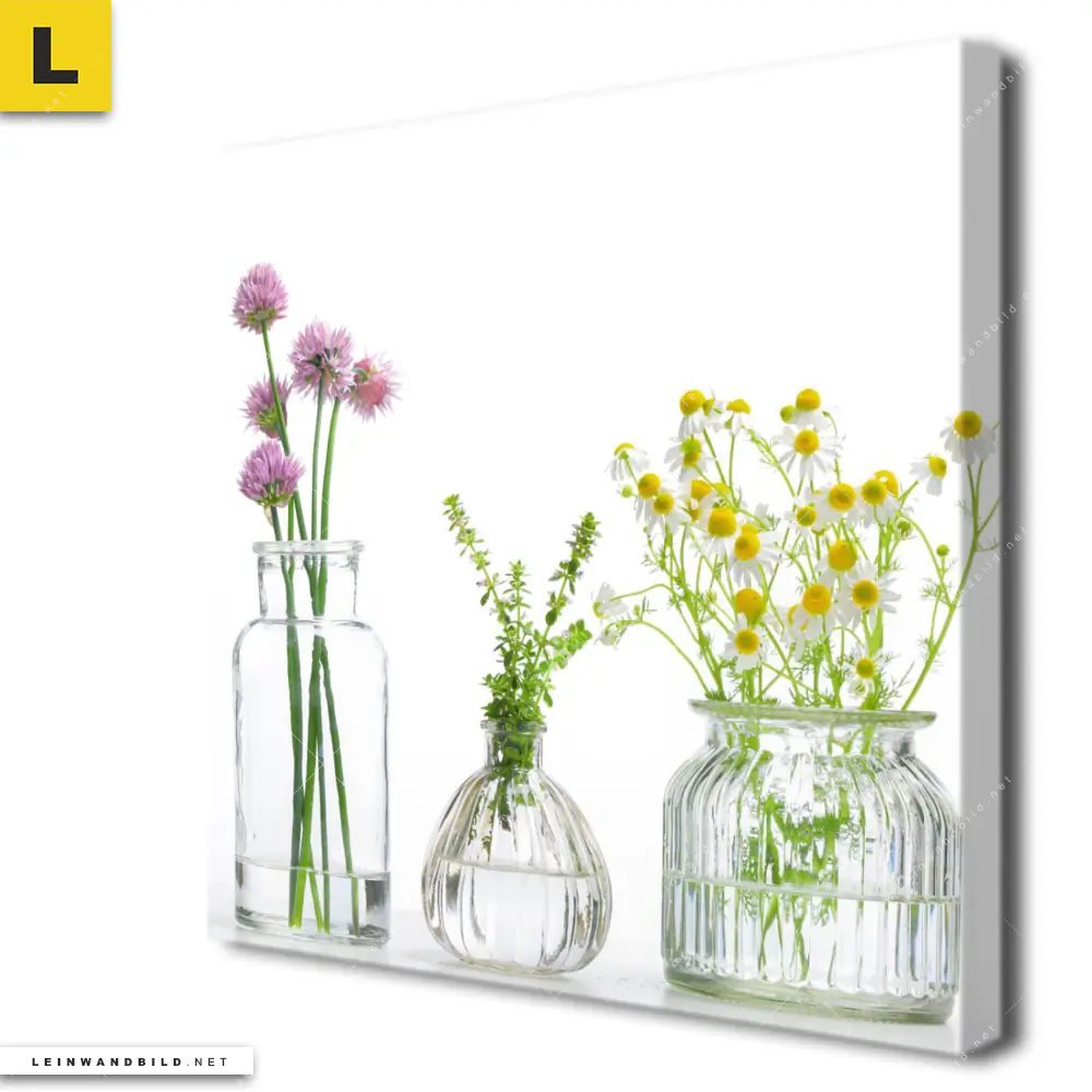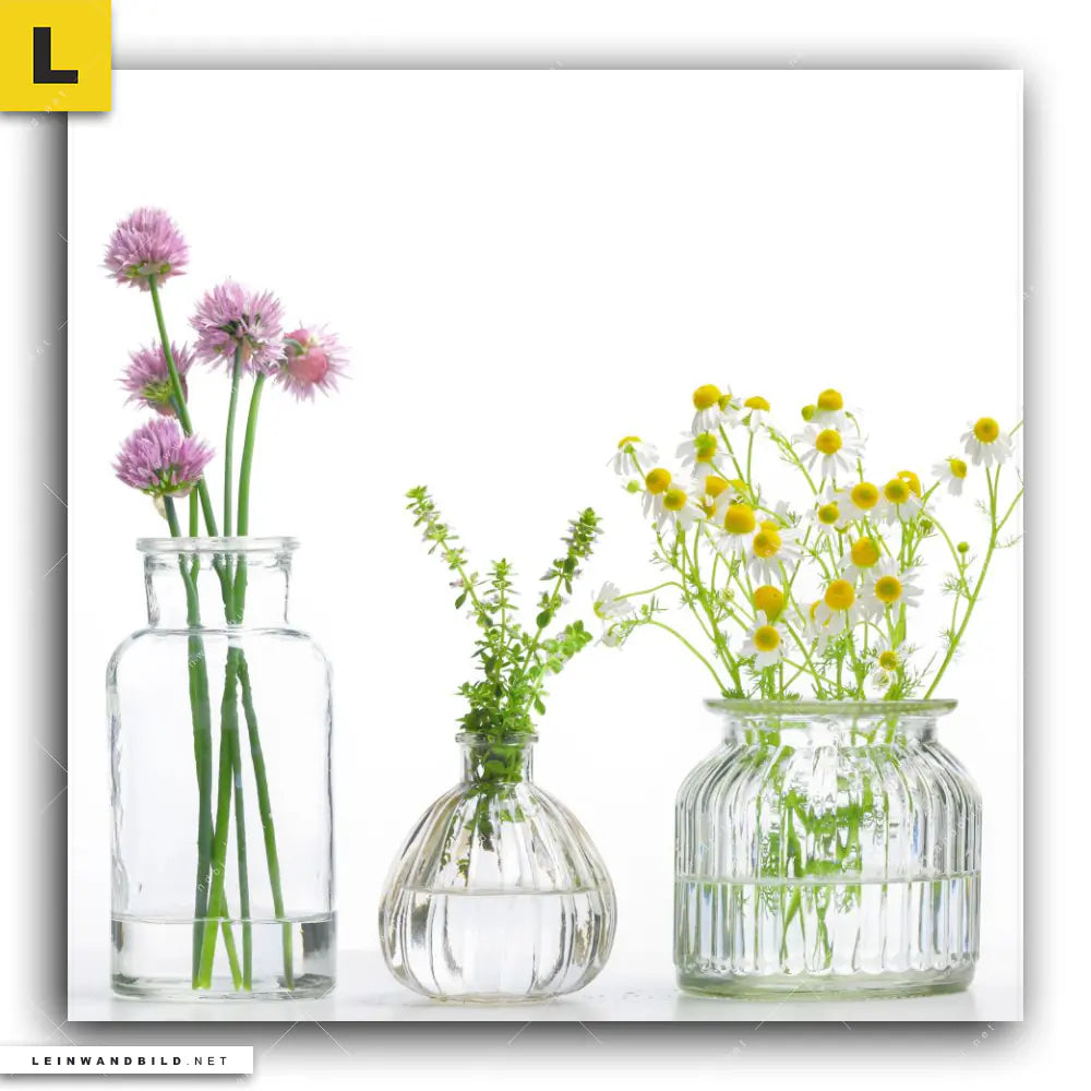 Du konfigurierst Dein individuelles Leinwandbild | Glasvasen mit Kräutern | Quadrat und wir produzieren es NEU für Dich. Unsere Essen - Trinken Leinwände sind KEINE Lagerware. Du bist Dir unsicher, welches Motiv oder Format das richtige für dein individuelles Keilrahmenbild ist, dann helfen wir dir gerne weiter und beraten dich!