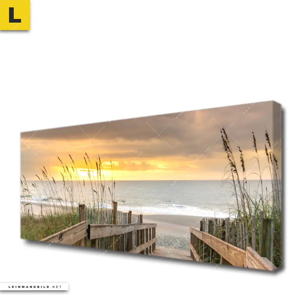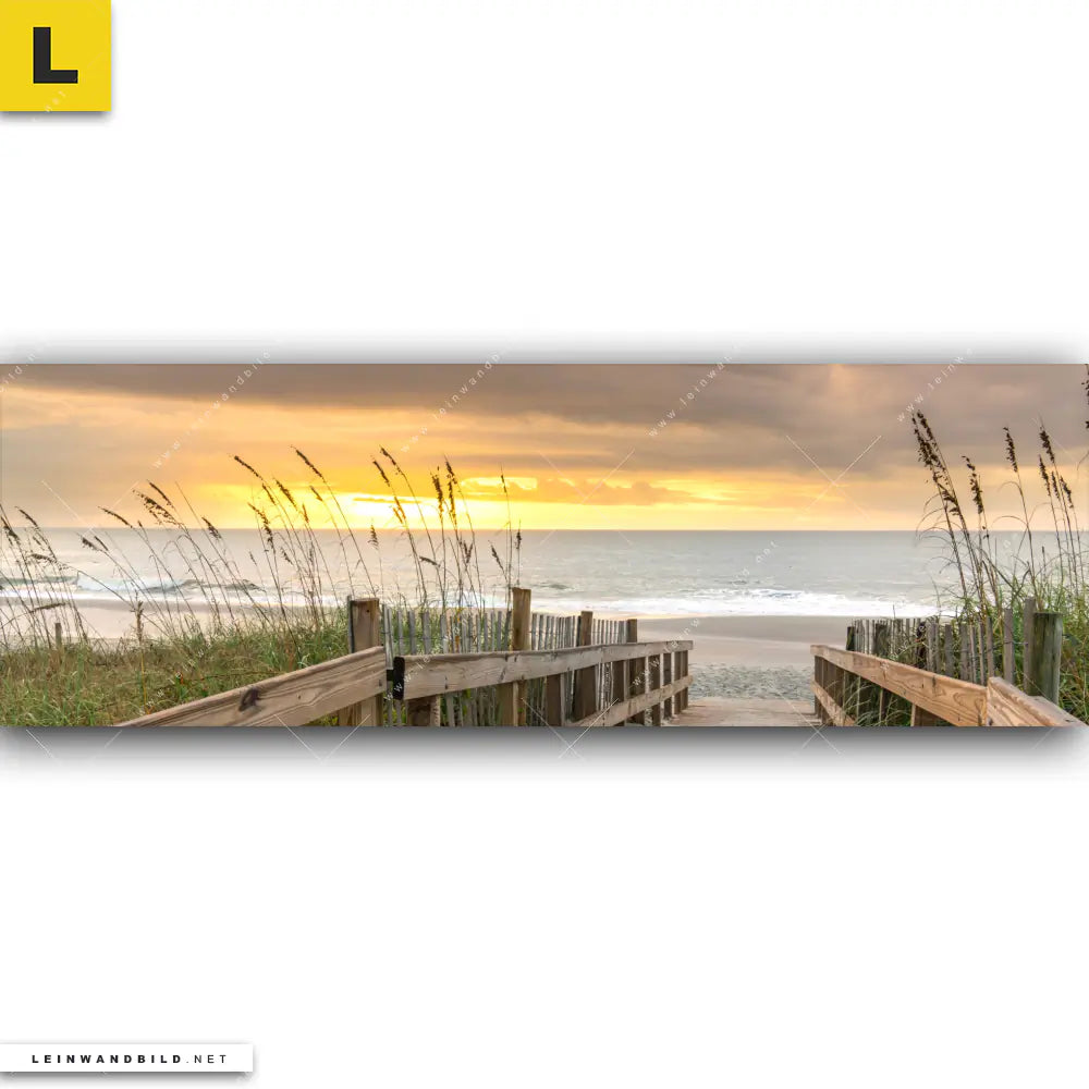 Du konfigurierst Dein individuelles Leinwandbild | Sonnenuntergang am Strandweg | Panorama und wir produzieren es NEU für Dich. Unsere Strand - Meer, Landschaften Leinwände sind KEINE Lagerware. Du bist Dir unsicher, welches Motiv oder Format das richtige für dein individuelles Keilrahmenbild ist, dann helfen wir dir gerne weiter und beraten dich!