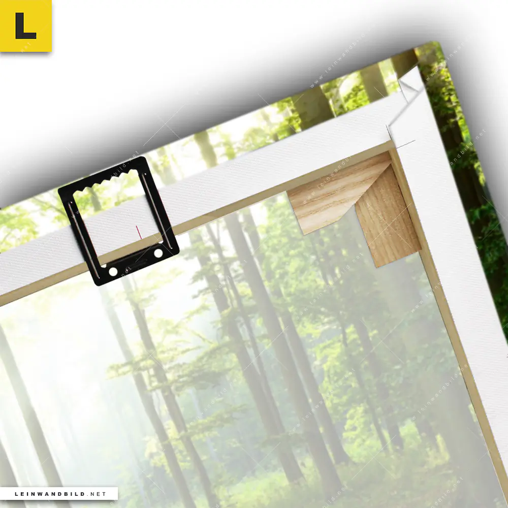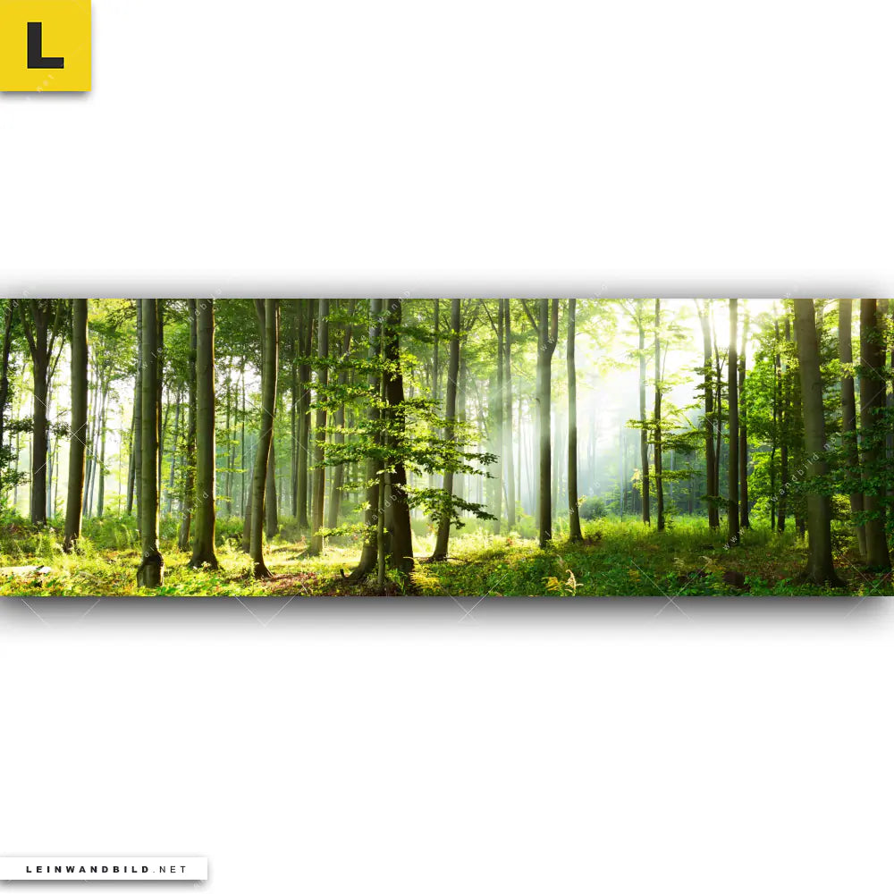 Du konfigurierst Dein individuelles Leinwandbild | Sonniger Morgen im Wald | Panorama und wir produzieren es NEU für Dich. Unsere Landschaften, Wald - Bäume Leinwände sind KEINE Lagerware. Du bist Dir unsicher, welches Motiv oder Format das richtige für dein individuelles Keilrahmenbild ist, dann helfen wir dir gerne weiter und beraten dich!