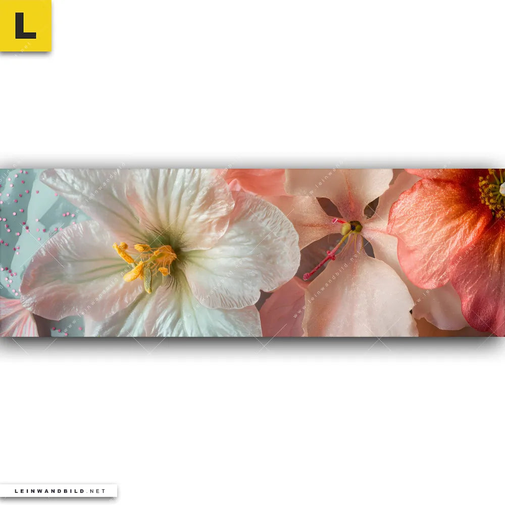 Du konfigurierst Dein individuelles Leinwandbild | Zarte Blütenpracht | Panorama und wir produzieren es NEU für Dich. Unsere Blumen - Botanik Leinwände sind KEINE Lagerware. Du bist Dir unsicher, welches Motiv oder Format das richtige für dein individuelles Keilrahmenbild ist, dann helfen wir dir gerne weiter und beraten dich!