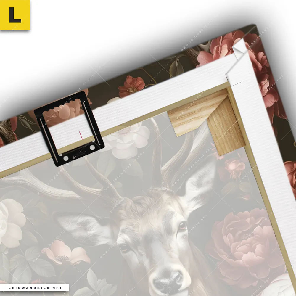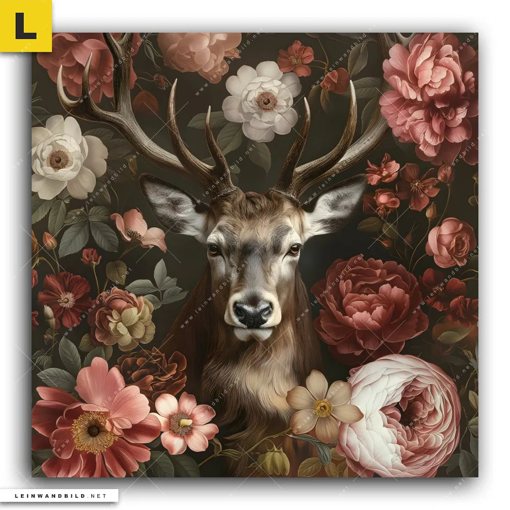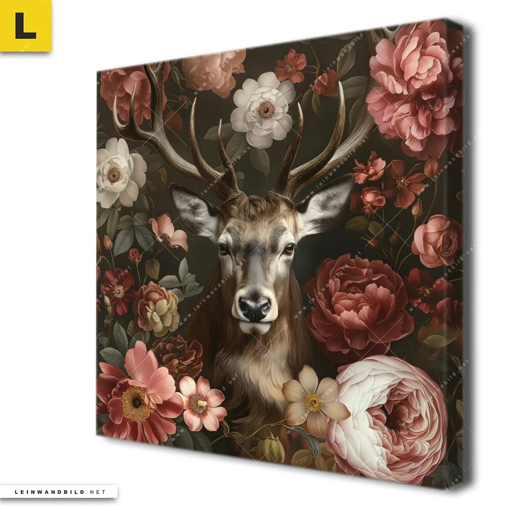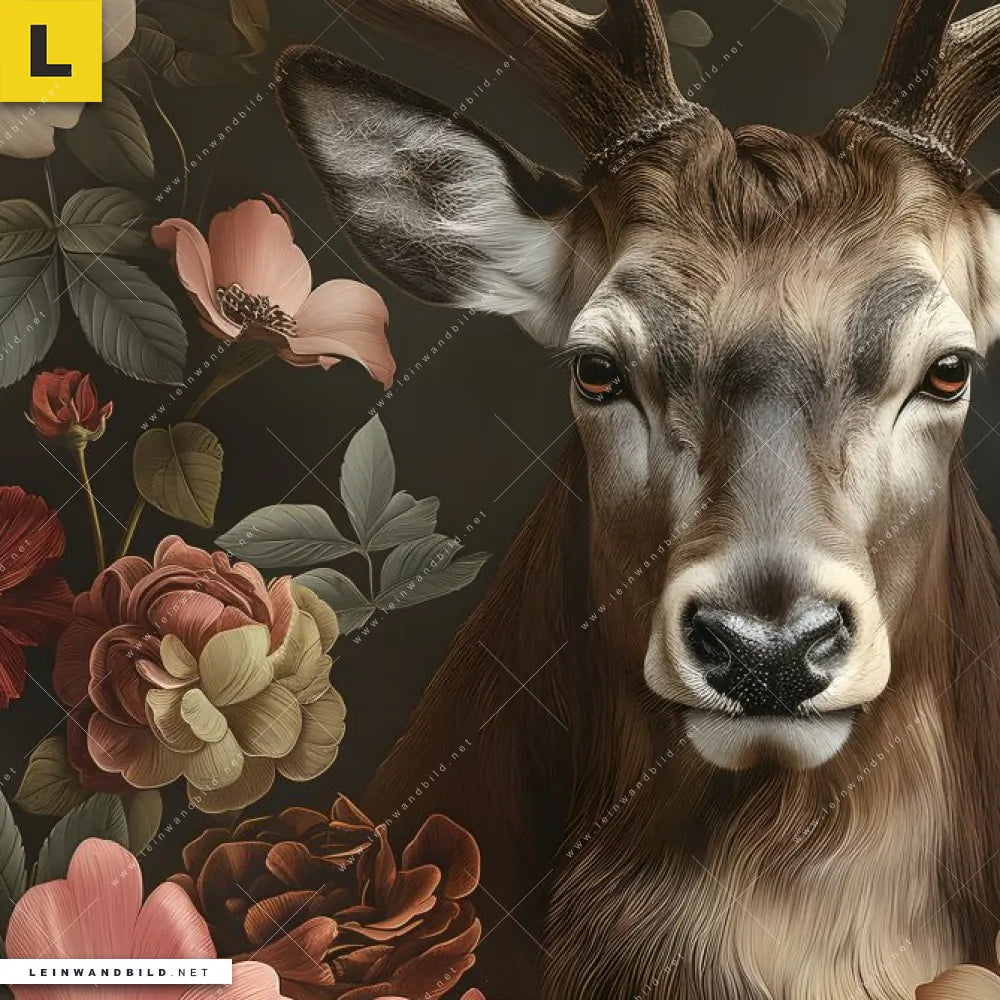 Du konfigurierst Dein individuelles Leinwandbild | Friedlicher Hirsch und Blüten | Quadrat und wir produzieren es NEU für Dich. Unsere Tierwelt, Blumen - Botanik Leinwände sind KEINE Lagerware. Du bist Dir unsicher, welches Motiv oder Format das richtige für dein individuelles Keilrahmenbild ist, dann helfen wir dir gerne weiter und beraten dich!